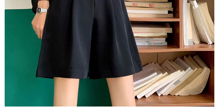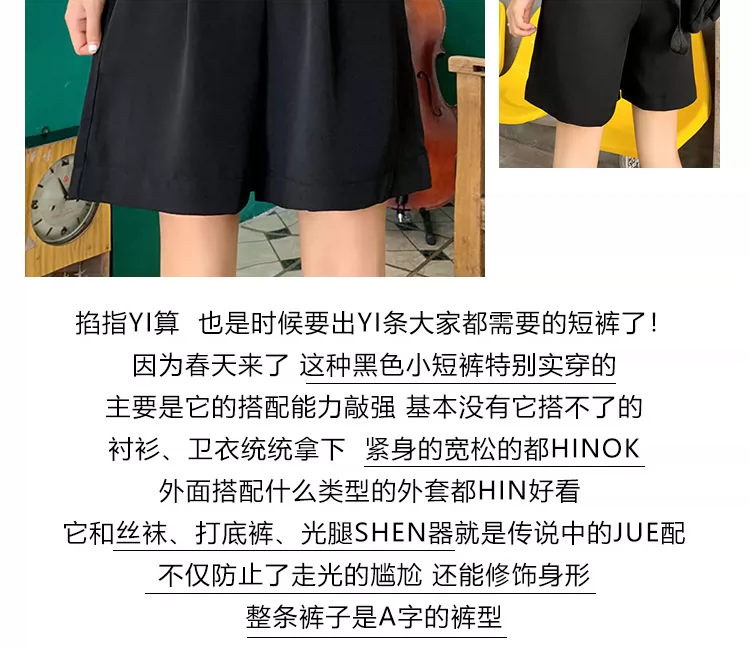 - Quần short dáng rộng màu đen cao cấp, chất liệu mỏng nhẹ mùa hè, kiểu dáng ôm dáng quả lê, dành cho nữ, size lớn, che hông, giúp thon gọn.
