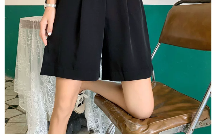 Quần short dáng rộng màu đen cao cấp, chất liệu mỏng nhẹ mùa hè, kiểu dáng ôm dáng quả lê, dành cho nữ, size lớn, che hông, giúp thon gọn.