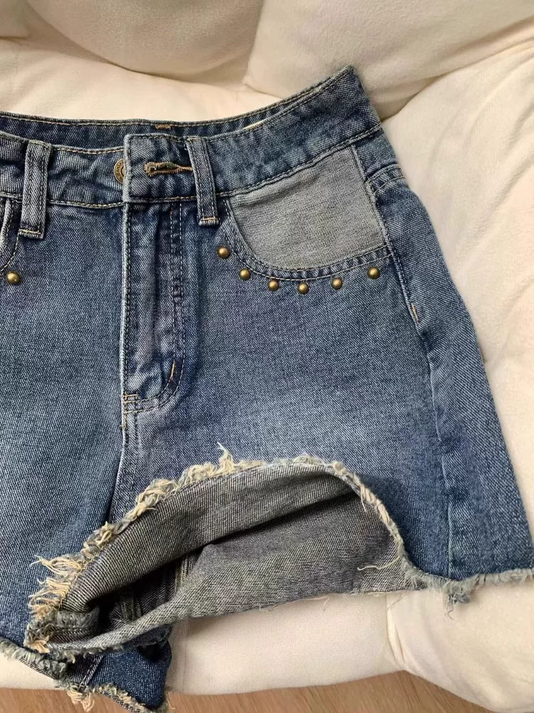 - Quần short denim cổ điển dành cho nữ, cỡ lớn mùa hè, kiểu dáng thời trang, cạp cao, che hông, quần ống rộng dáng chữ A, rách, tôn dáng