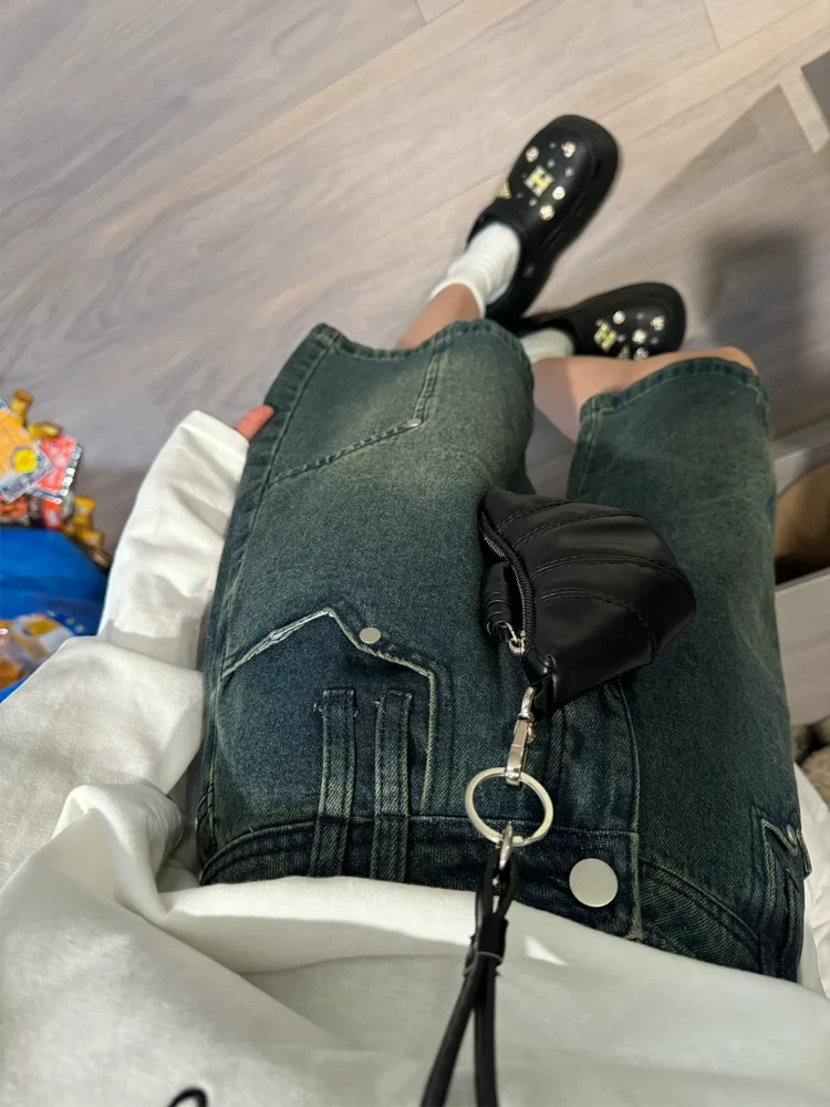 Quần short denim cổ điển kiểu Mỹ dành cho nữ, cỡ lớn mùa hè, lưng cao, dáng rộng, thon gọn, dáng quả lê, quần short dài vừa phải ống rộng
