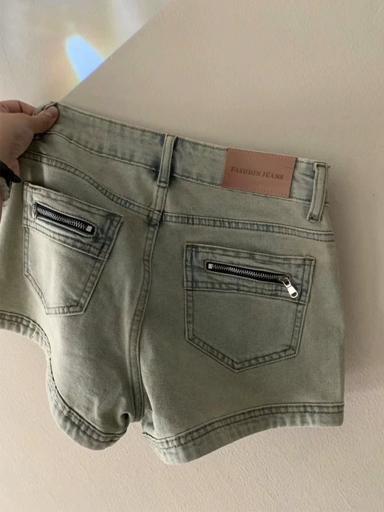 Quần short denim cổ điển kiểu Mỹ dành cho nữ, dáng quả lê mùa hè, cỡ lớn, lưng cao, dáng rộng, che hông, quần chữ A giảm béo