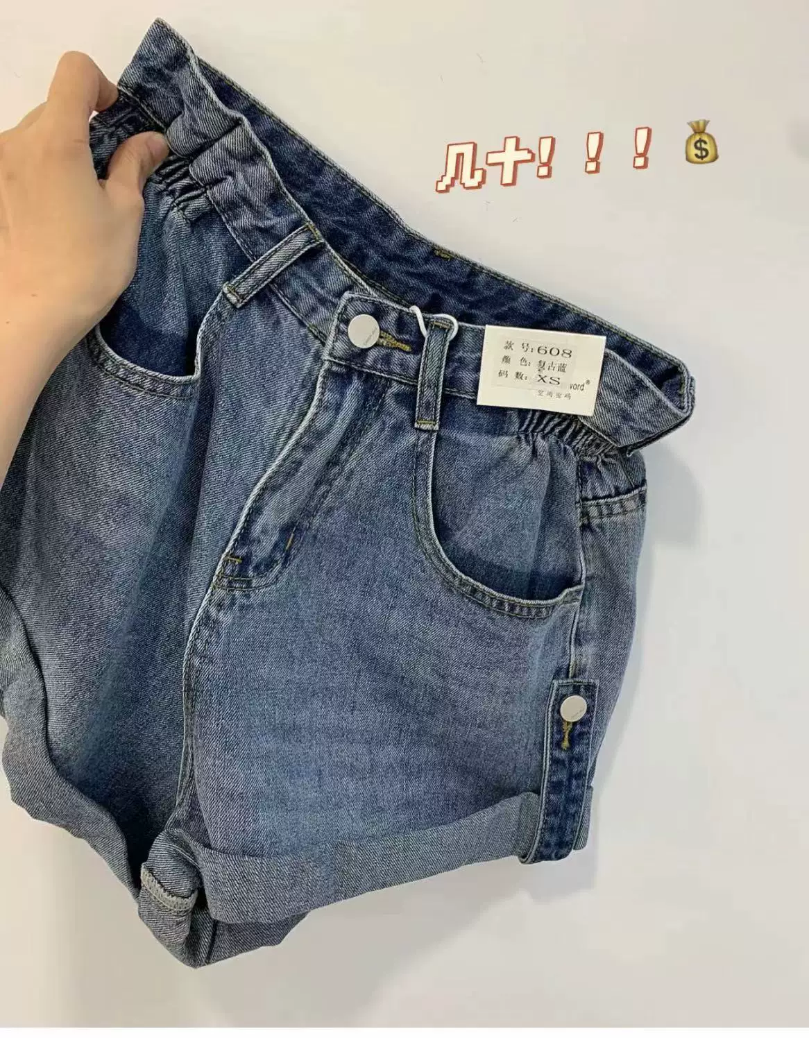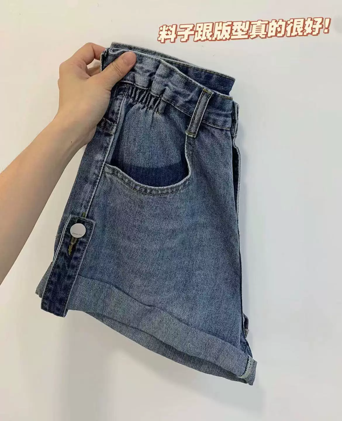 - Quần short denim dáng chữ A, cạp cao, tôn dáng, rộng ống, kiểu dáng quả lê, dành cho nữ, size lớn, dáng nhỏ nhắn, mùa hè