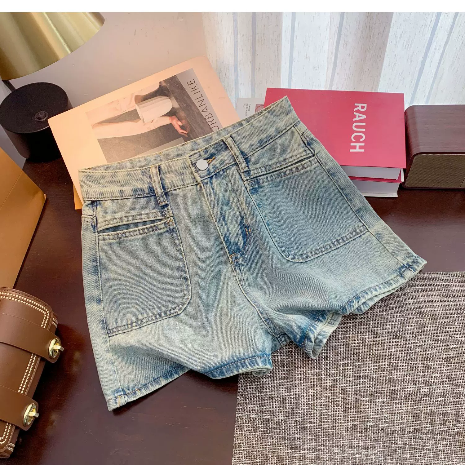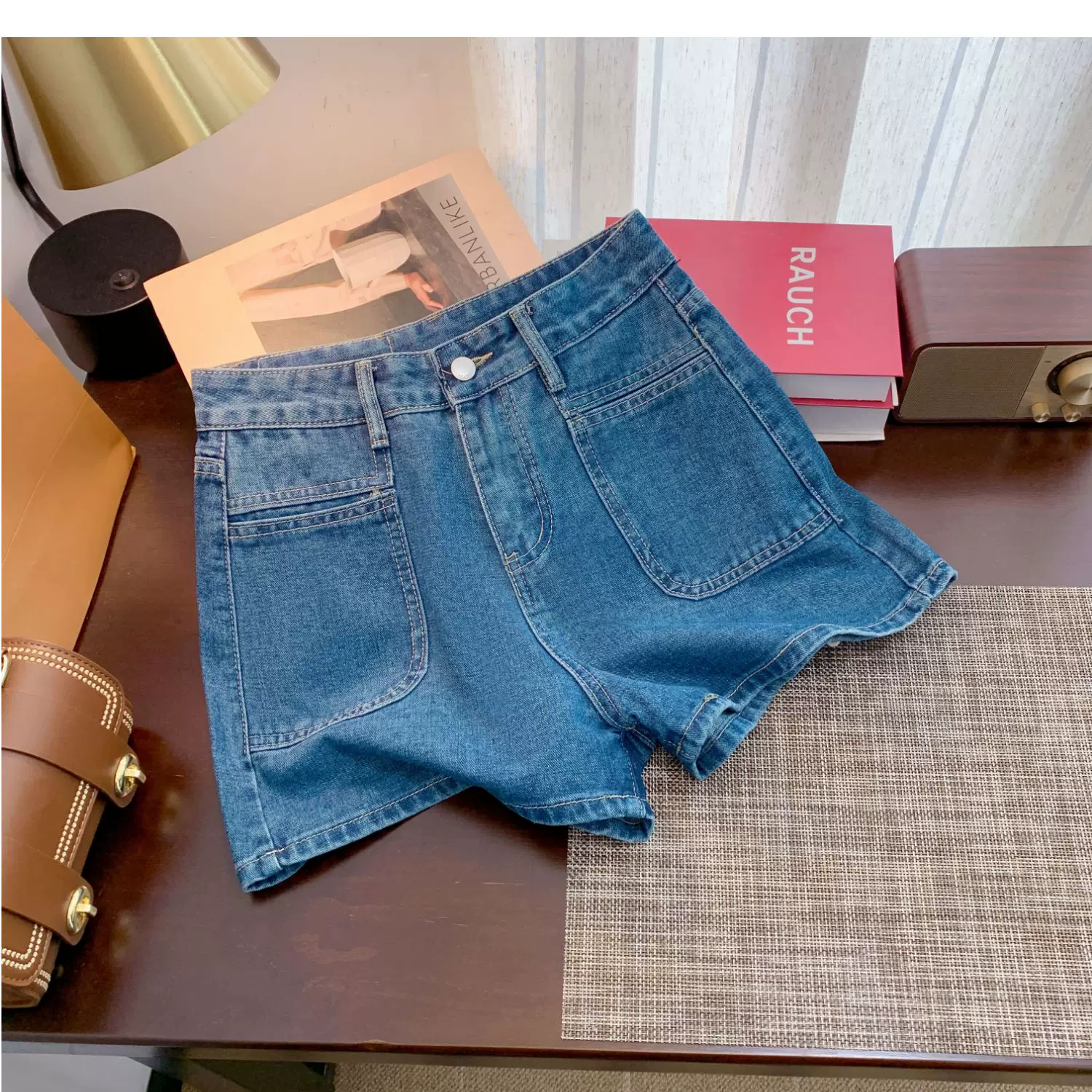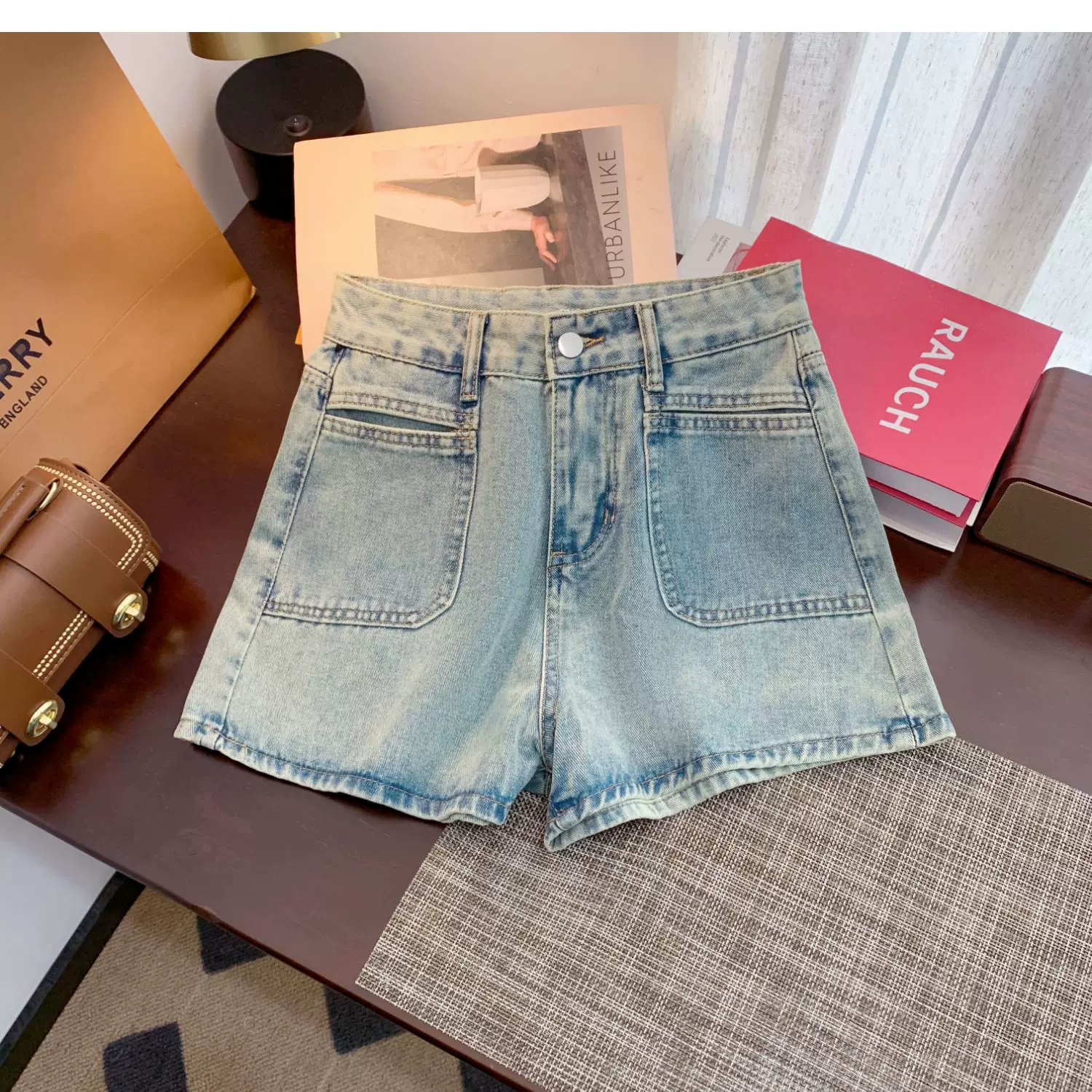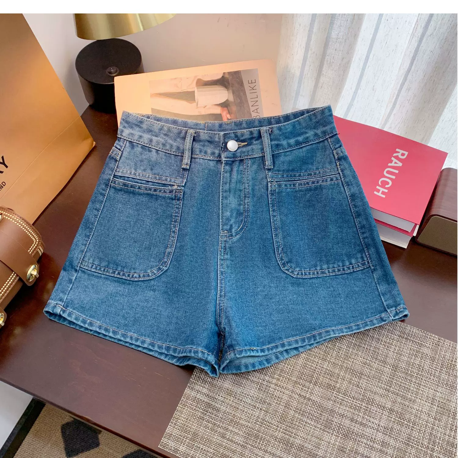 - Quần short denim dáng chữ A dành cho nữ, size lớn mùa hè, cạp cao, che hông, dáng nhỏ nhắn, tôn dáng, quần ống rộng