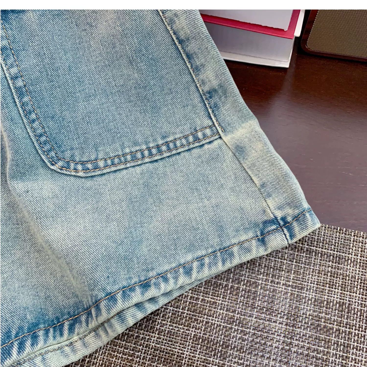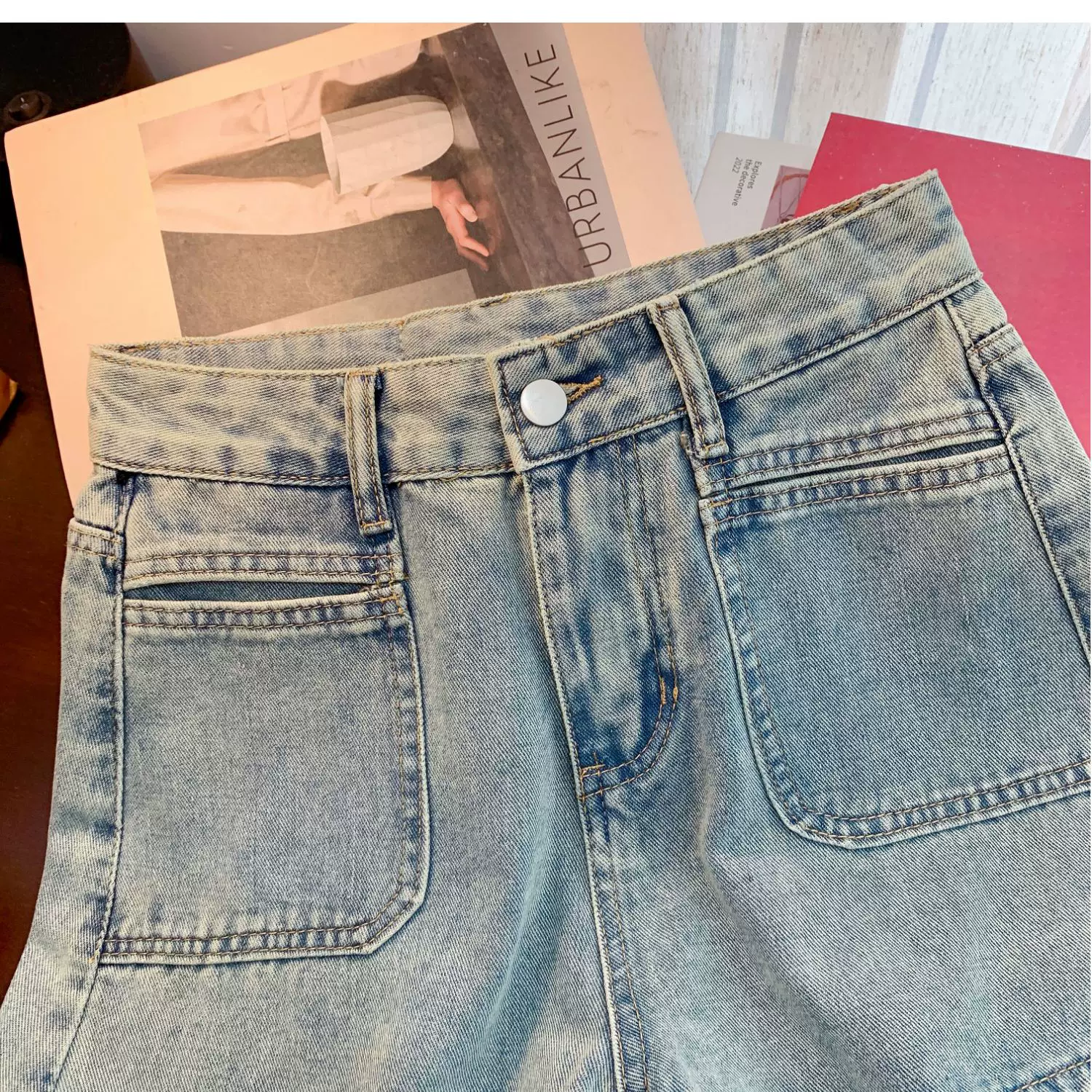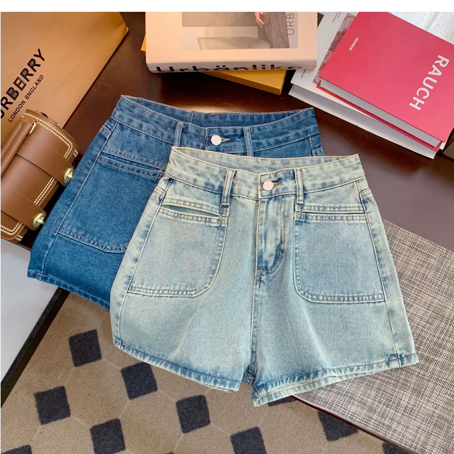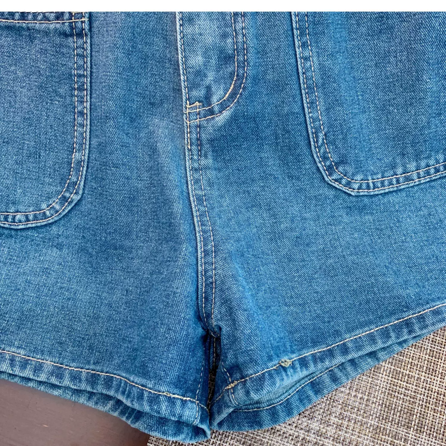 - Quần short denim dáng chữ A dành cho nữ, size lớn mùa hè, cạp cao, che hông, dáng nhỏ nhắn, tôn dáng, quần ống rộng