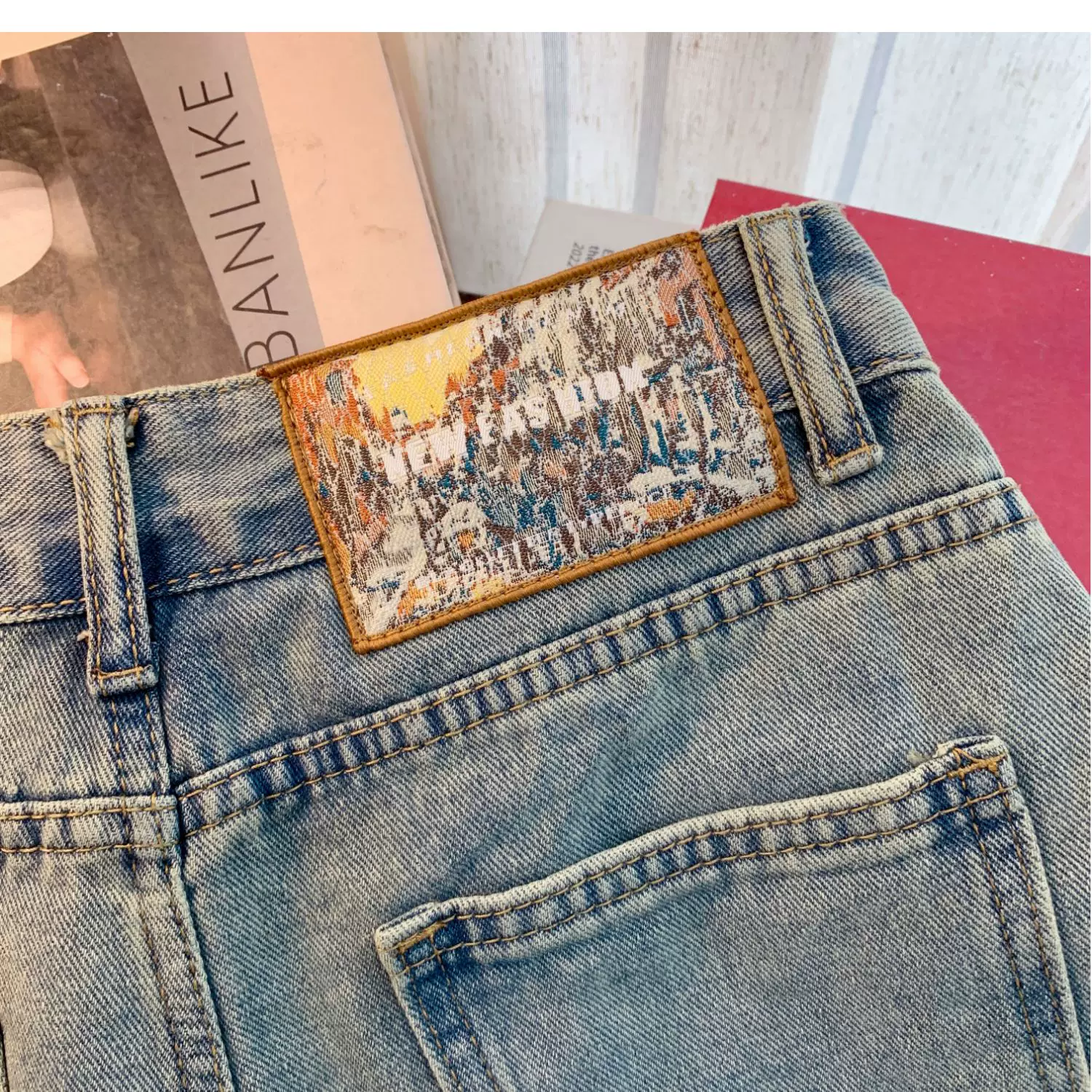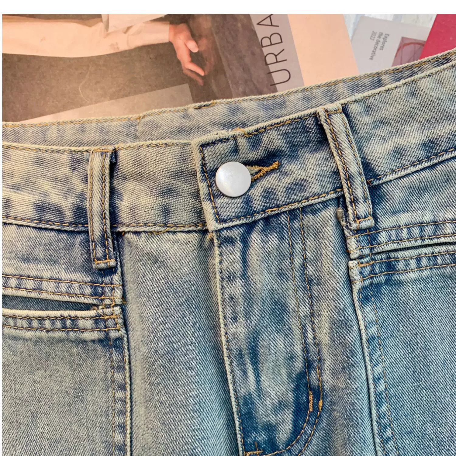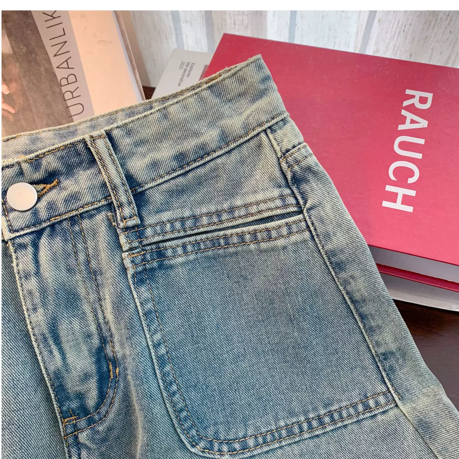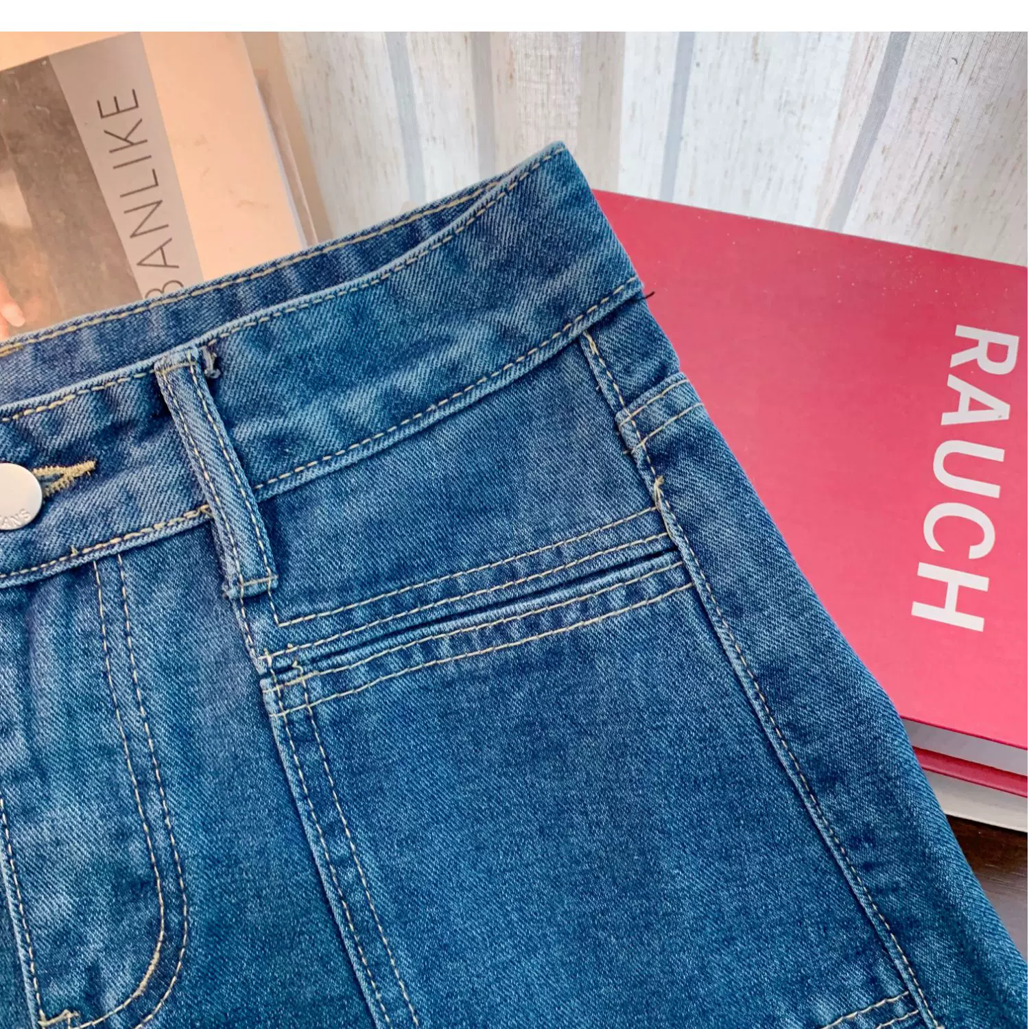 - Quần short denim dáng chữ A dành cho nữ, size lớn mùa hè, cạp cao, che hông, dáng nhỏ nhắn, tôn dáng, quần ống rộng