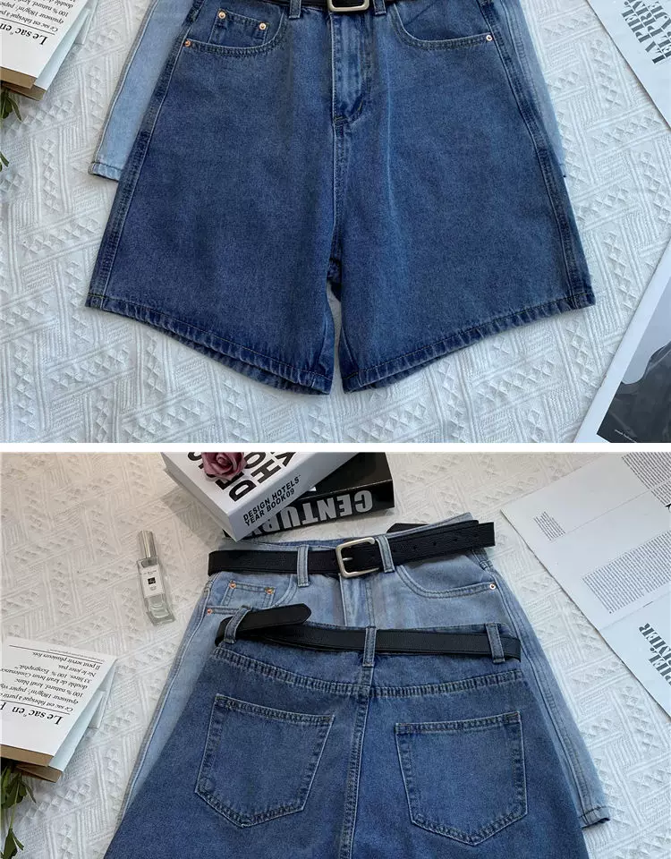 - Quần short denim dáng lê dành cho nữ, kiểu dáng mỏng mùa hè, cỡ lớn, lưng cao, dáng rộng, tôn dáng, quần ống rộng dáng chữ A.