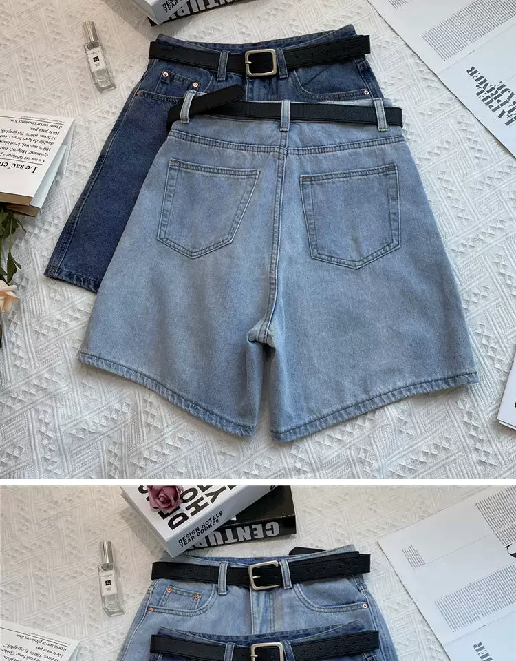 Quần short denim dáng lê dành cho nữ, kiểu dáng mỏng mùa hè, cỡ lớn, lưng cao, dáng rộng, tôn dáng, quần ống rộng dáng chữ A.