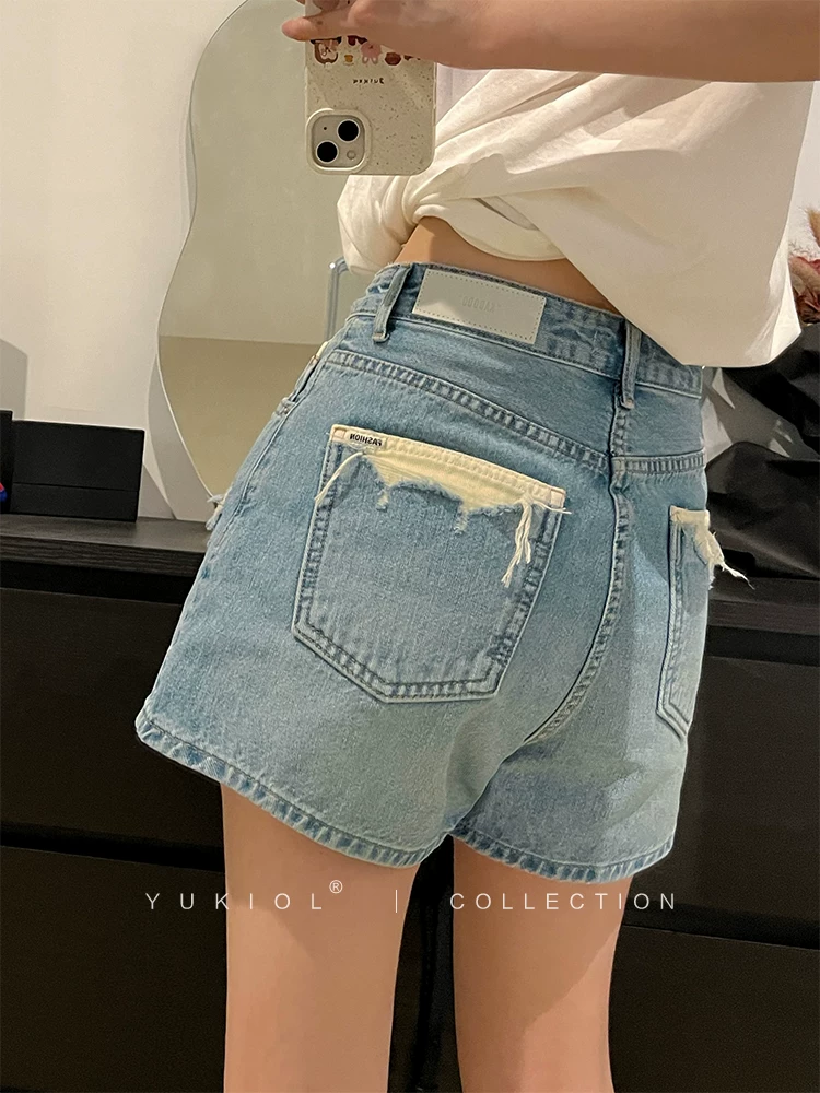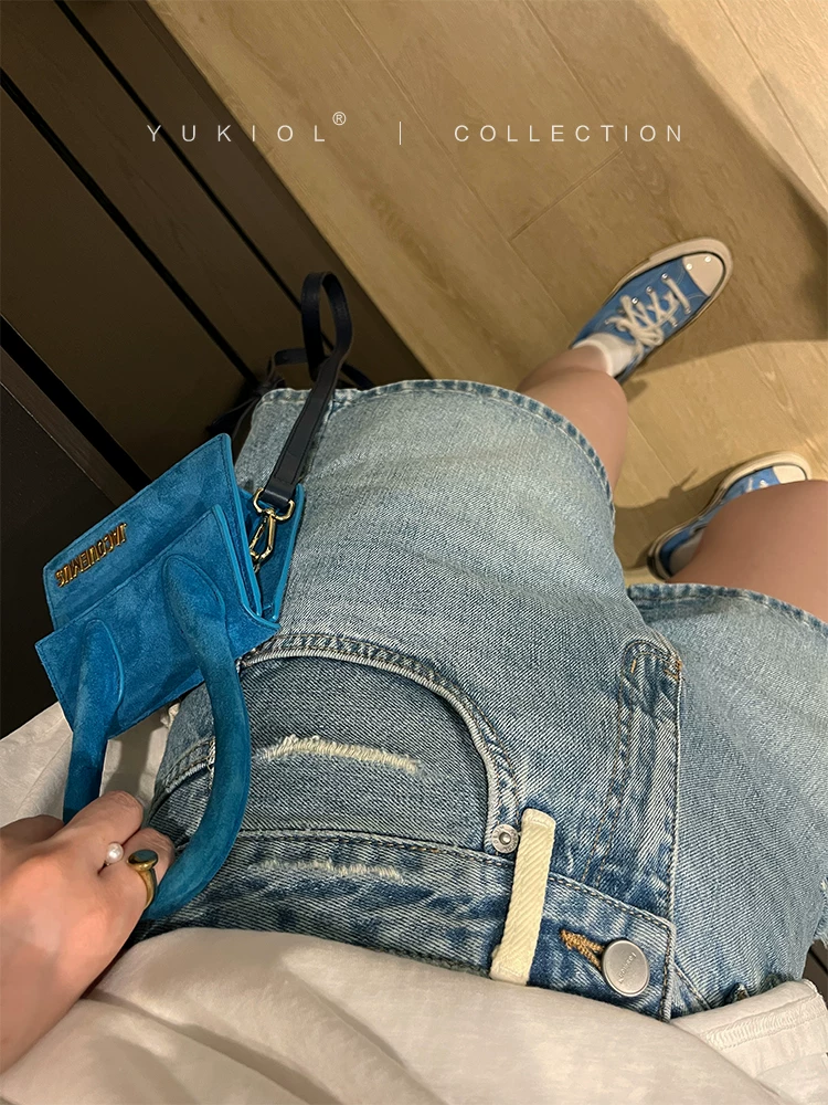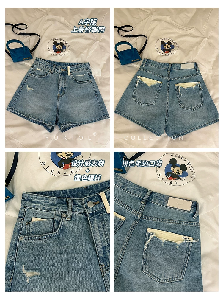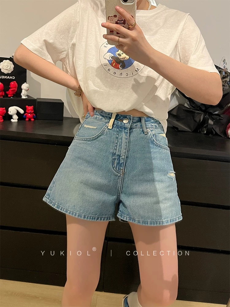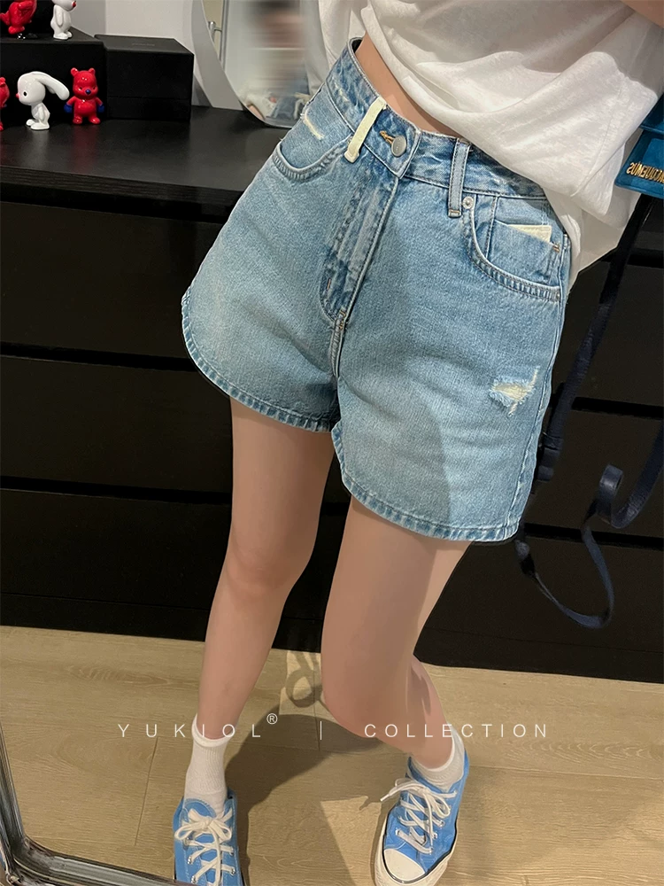 Quần short denim dáng lê dành cho nữ, size lớn mùa hè, chất liệu mỏng, cạp cao, dáng rộng, tôn dáng, quần ống rộng xẻ rách kiểu chữ A