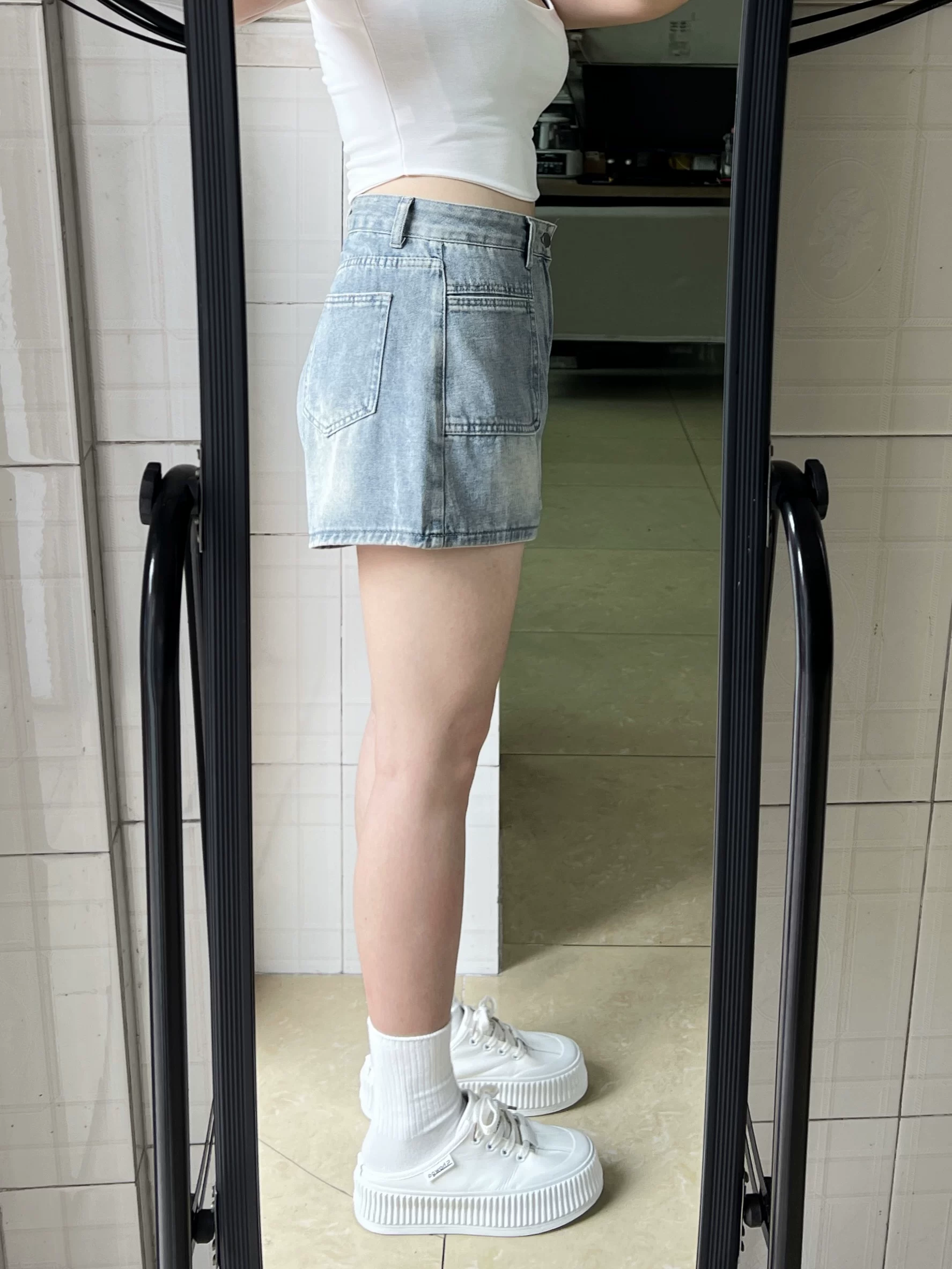 - Quần short denim dáng lê dành cho nữ, size lớn mùa hè, dáng nhỏ nhắn, cạp cao, che hông, quần ống rộng chữ A tôn dáng