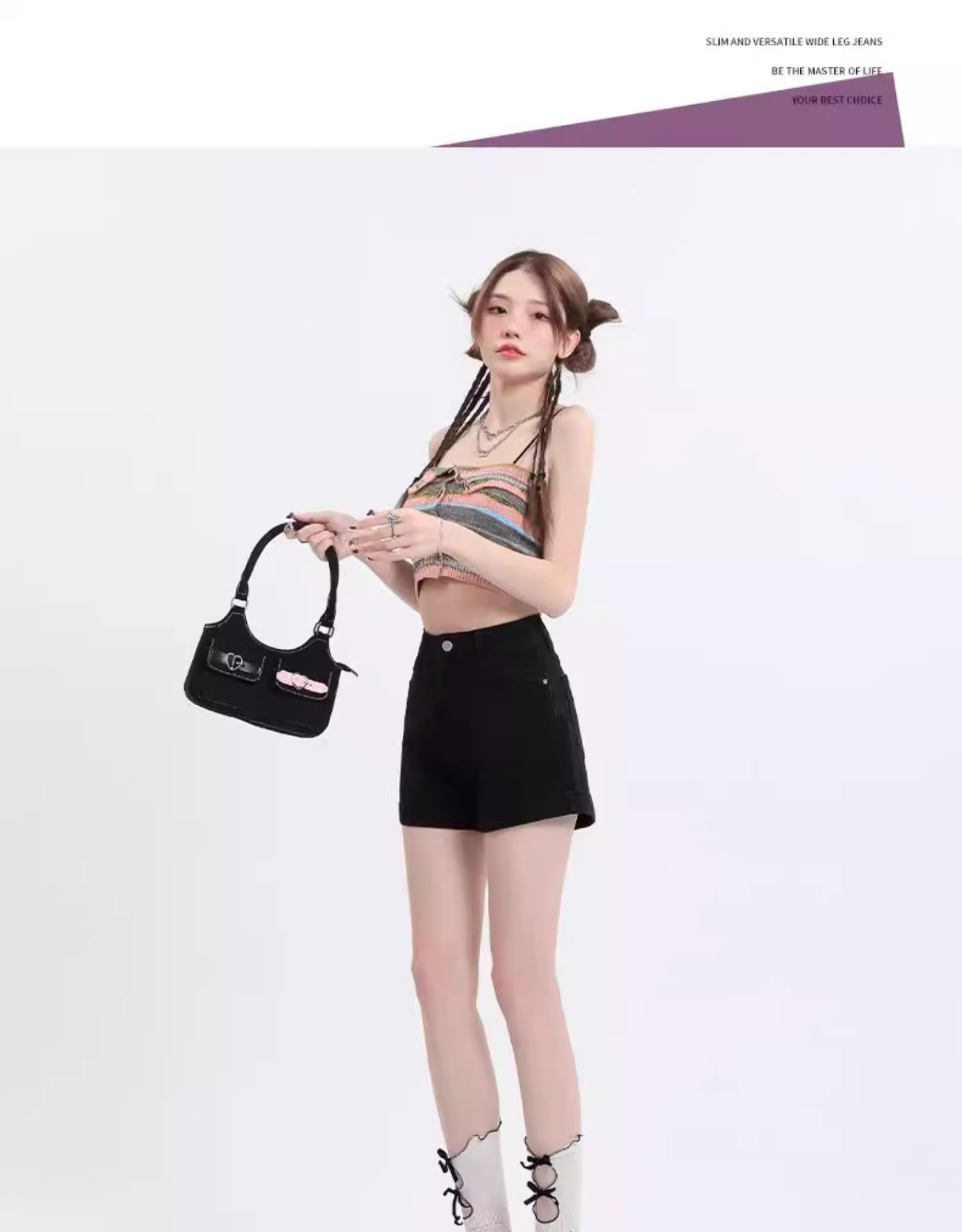 - Quần short denim đen La Chapelle dành cho nữ, kiểu mới hè 2025, dáng nhỏ nhắn, cạp cao, tôn dáng, kiểu chữ A