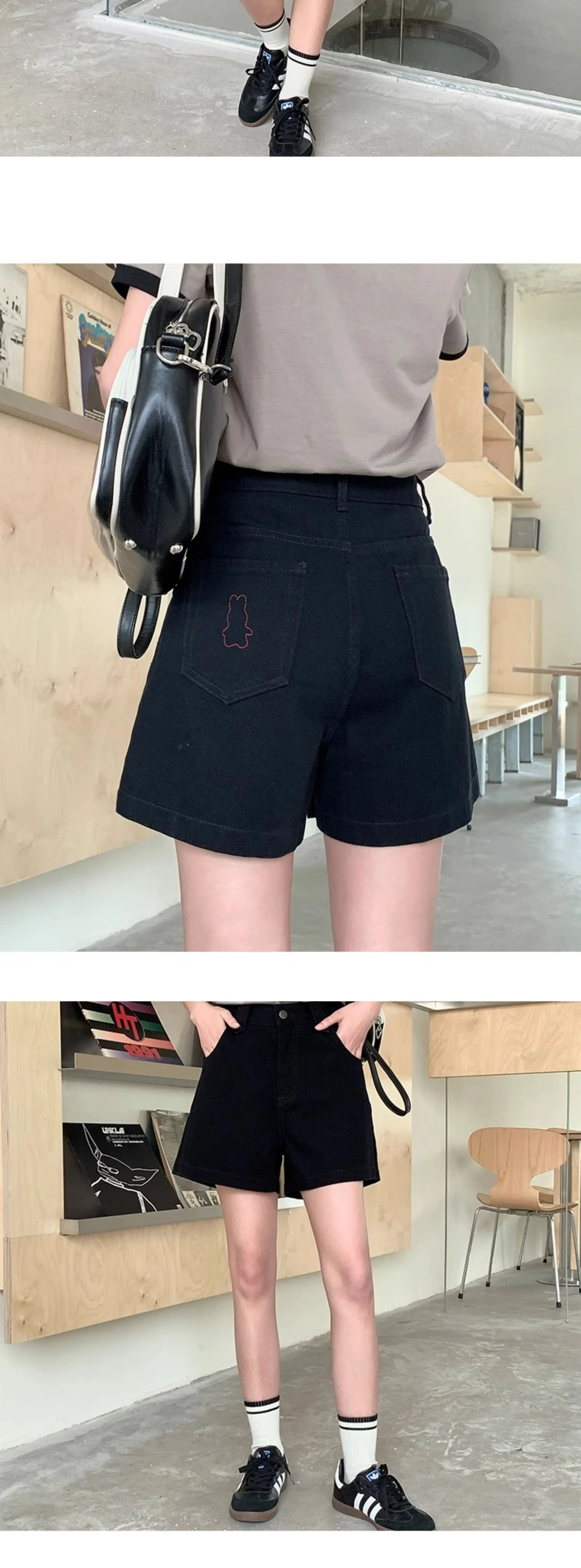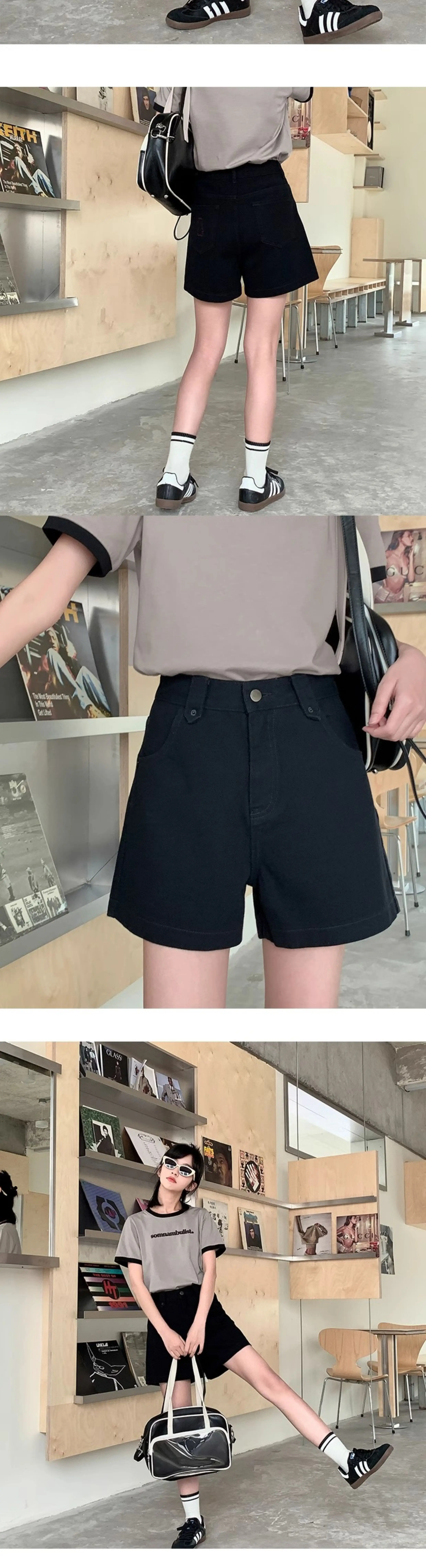 - Quần short denim kaki dáng quả lê dành cho nữ, cỡ lớn mùa hè, lưng cao, tôn dáng, quần ống rộng dáng chữ A nhỏ nhắn