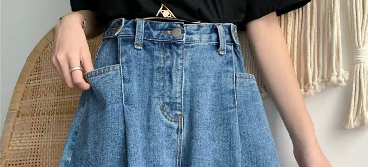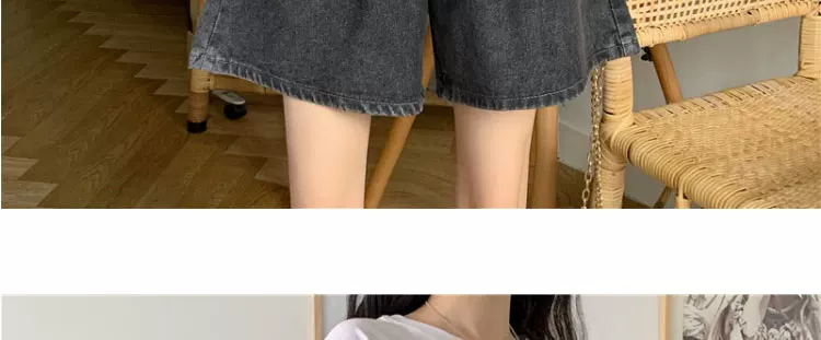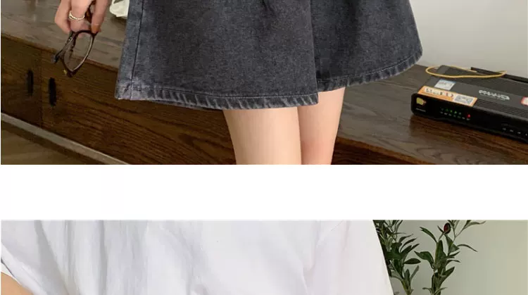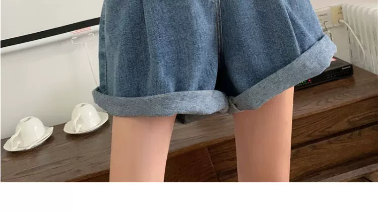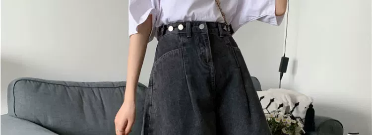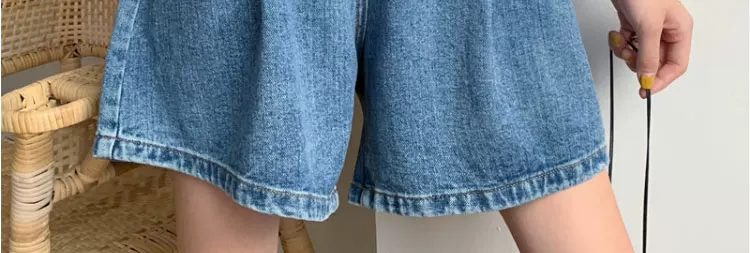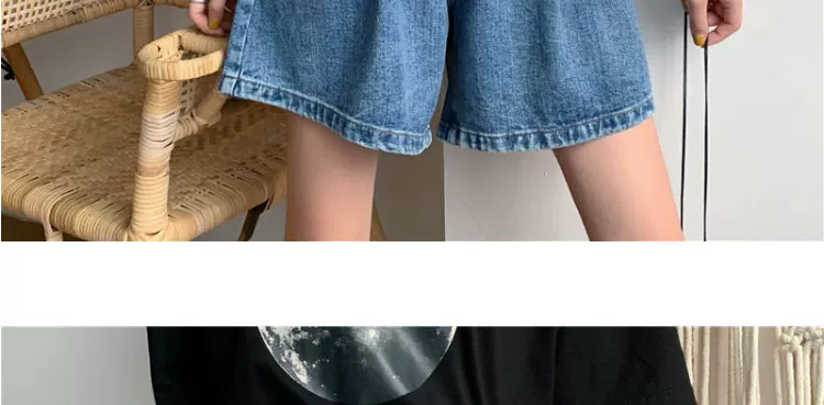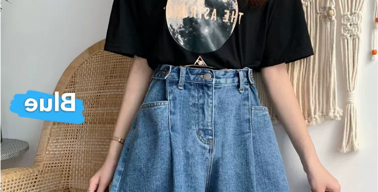 - Quần short denim lưng cao cỡ lớn dành cho nữ, kiểu dáng mùa hè mới, dáng quả lê, dáng rộng, tôn dáng, quần năm điểm, quần ống rộng chữ A.