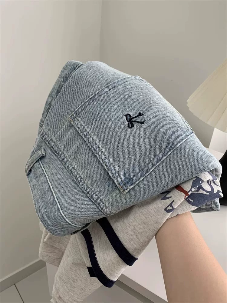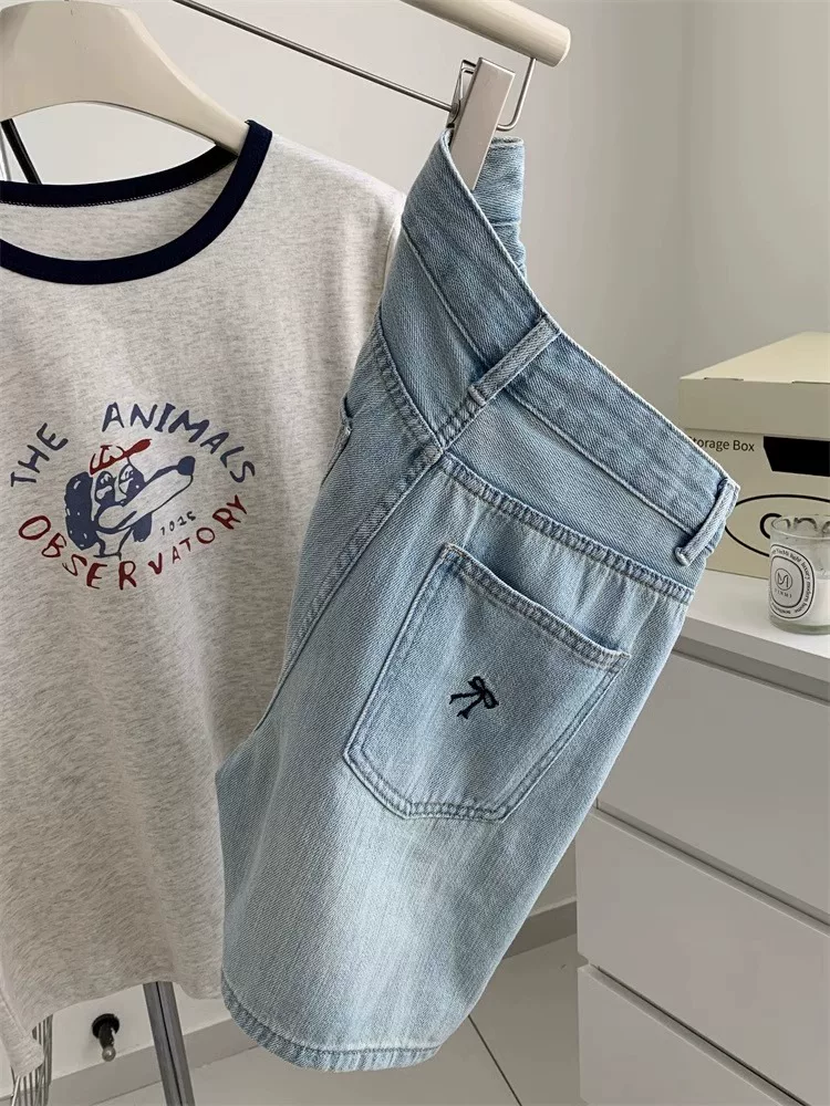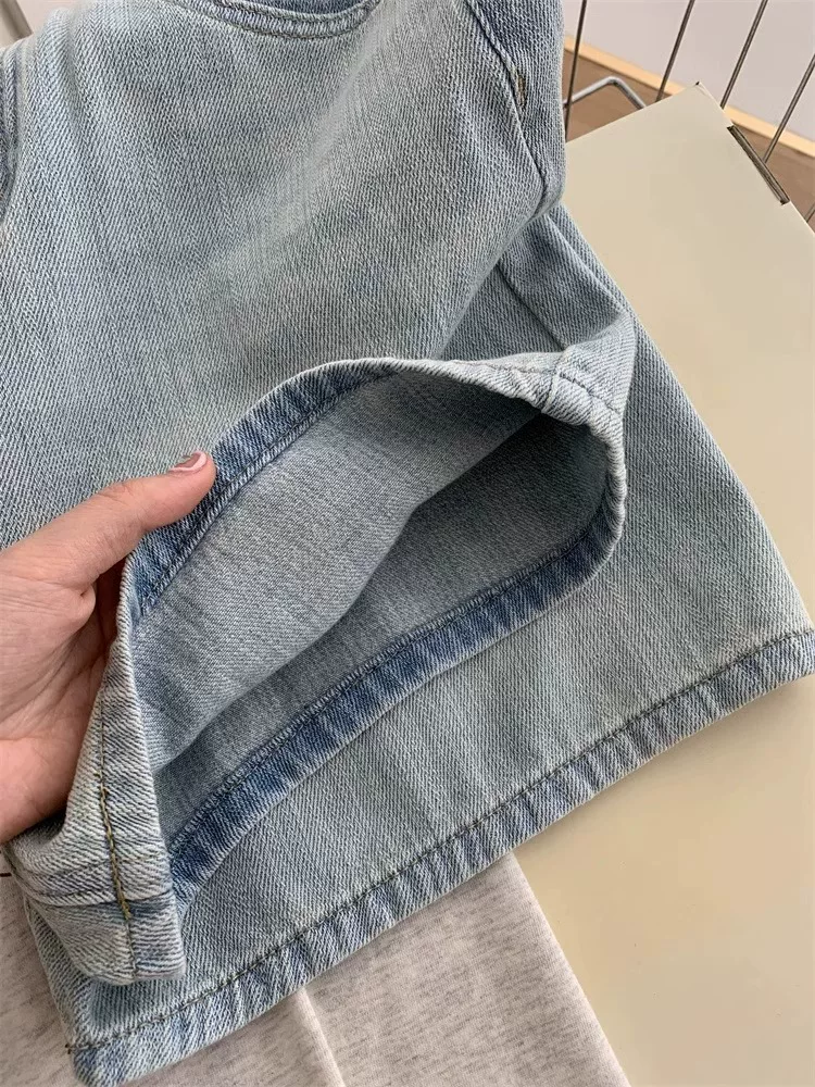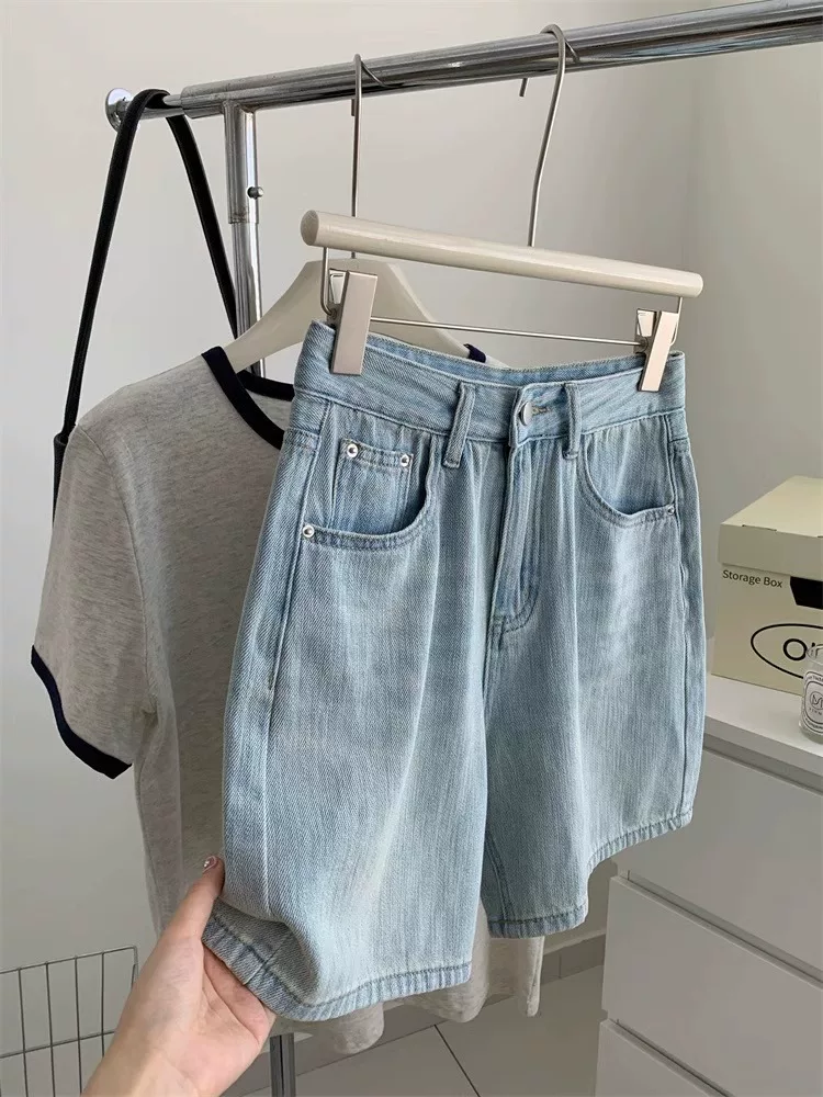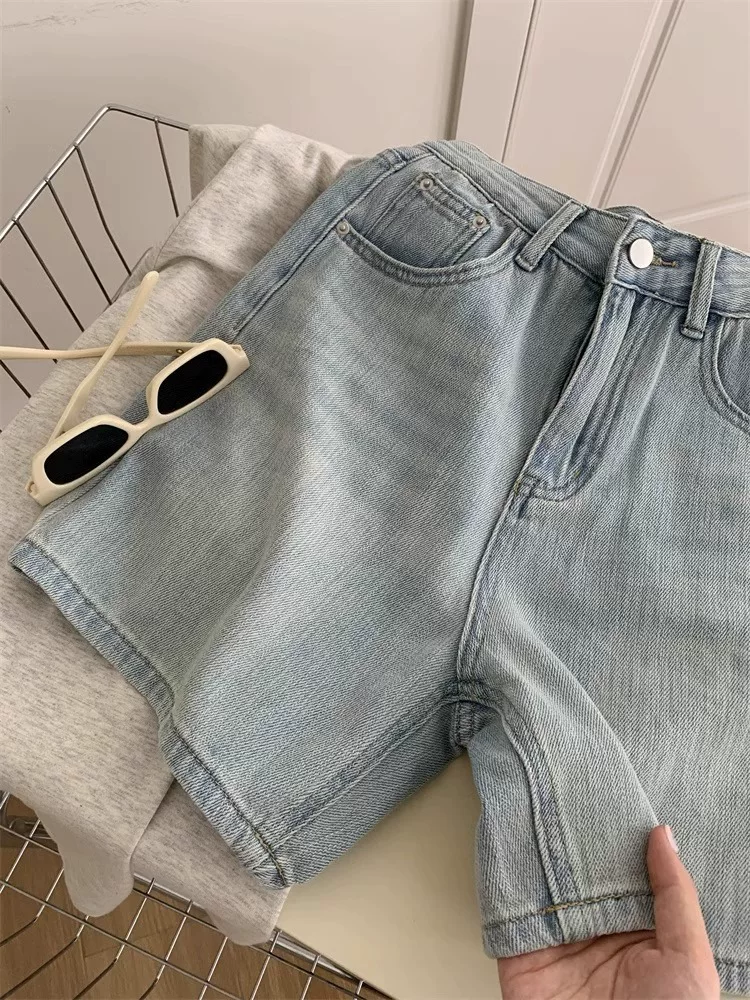 - Quần short denim màu sáng dành cho nữ, cỡ lớn mùa hè, kiểu dáng rộng rãi lưng cao hợp thời trang, che hông, quần ống rộng chữ A tôn dáng.