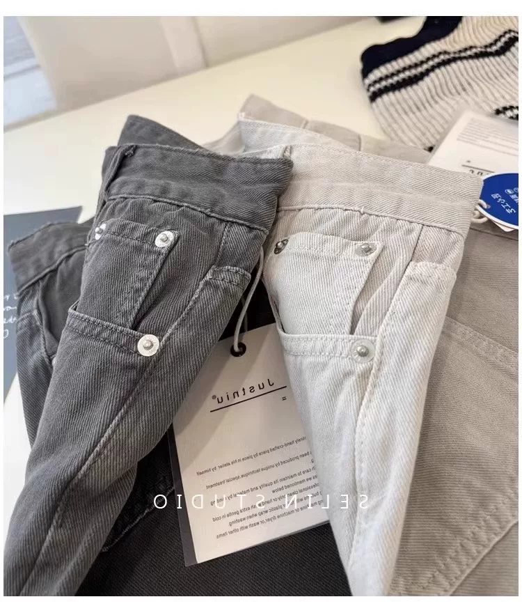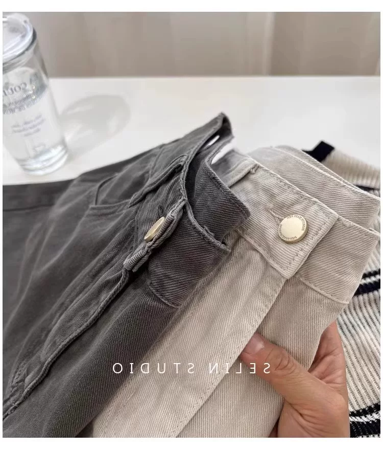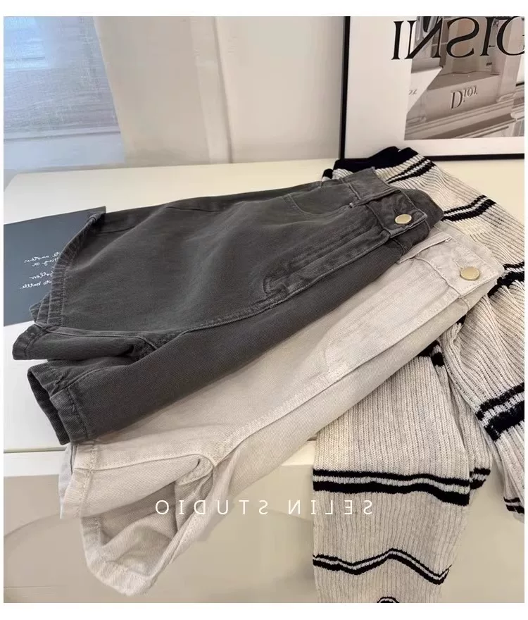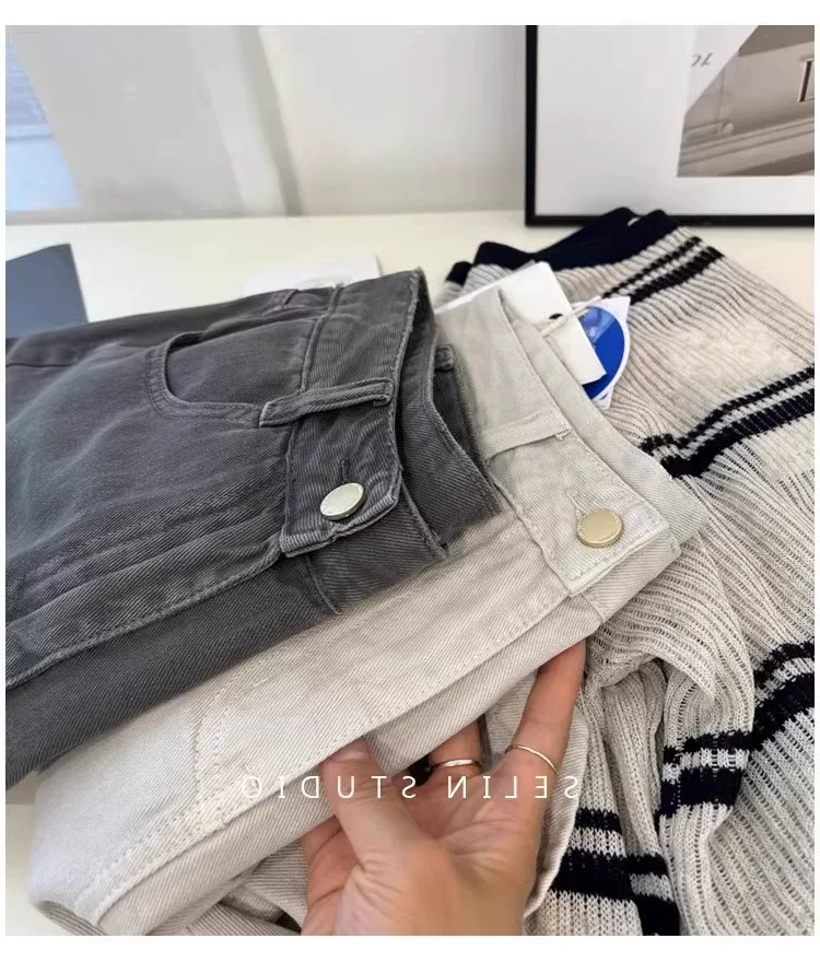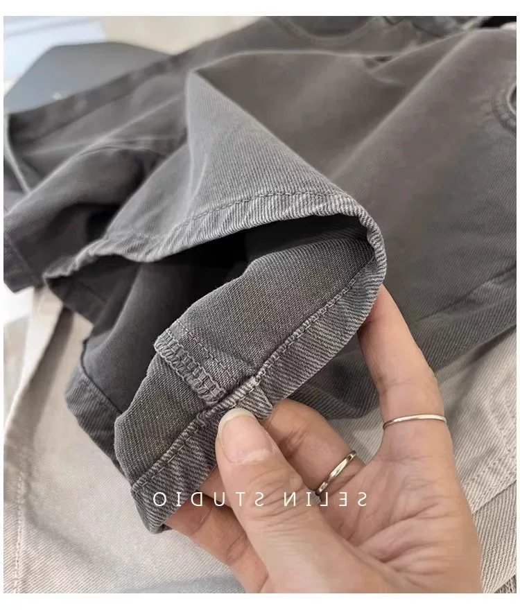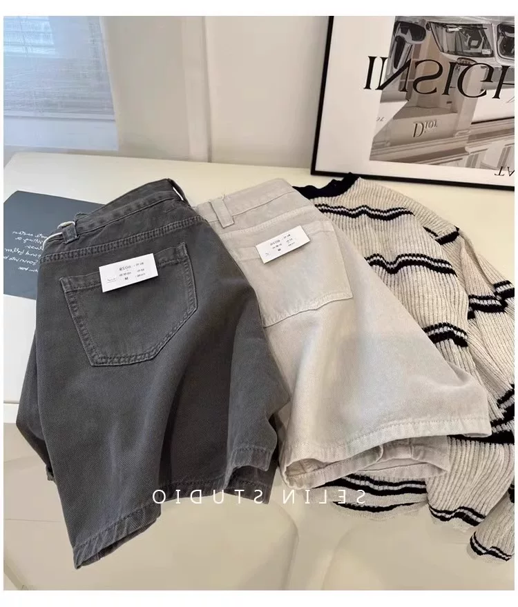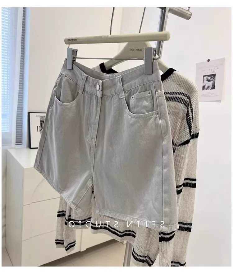 - Quần short denim màu xám đậm dành cho nữ, cỡ lớn mùa hè, lưng cao, dáng rộng, tôn dáng, quần ống rộng chữ A dành cho người có thân hình quả lê.