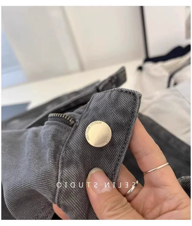 Quần short denim màu xám đậm dành cho nữ, cỡ lớn mùa hè, lưng cao, dáng rộng, tôn dáng, quần ống rộng chữ A dành cho người có thân hình quả lê.