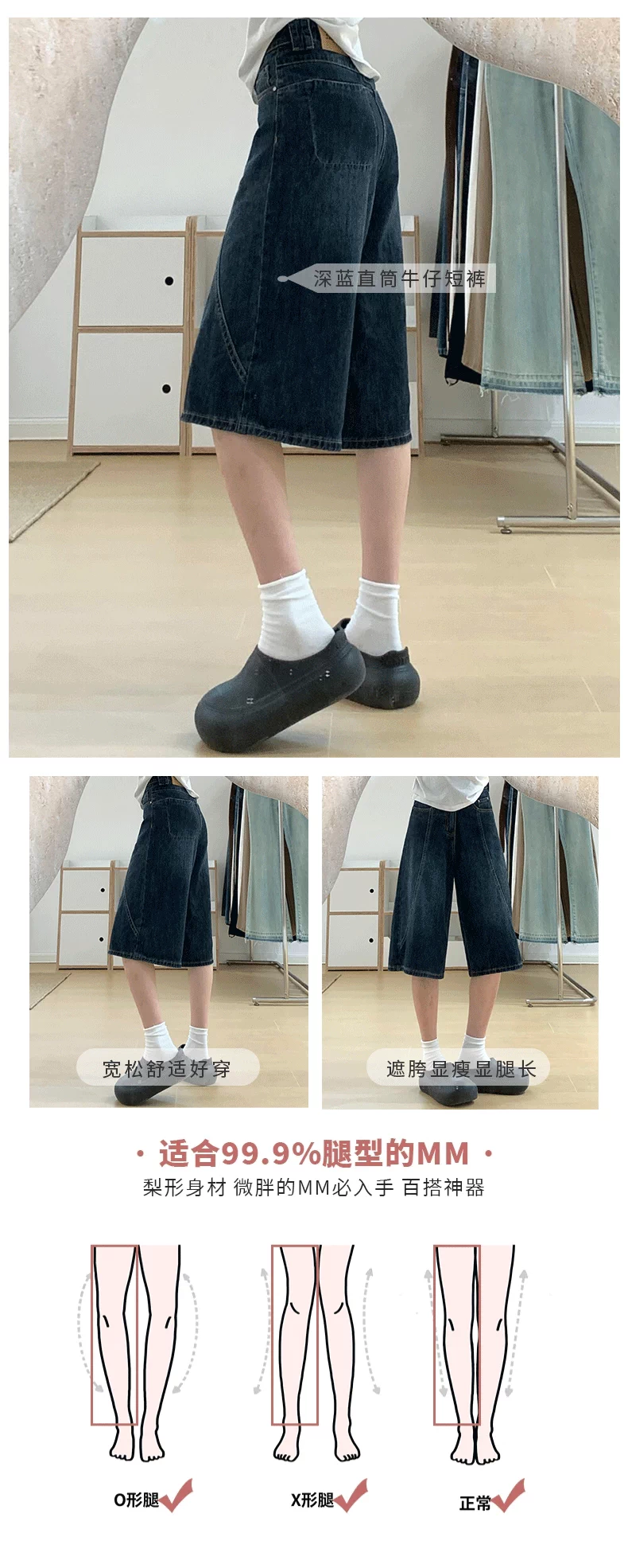 - Quần short denim màu xanh đậm dành cho nữ, kiểu dáng mùa hè mới, cỡ lớn, lưng cao, dáng rộng, che hông, giảm béo, quần ống rộng cắt ngắn.