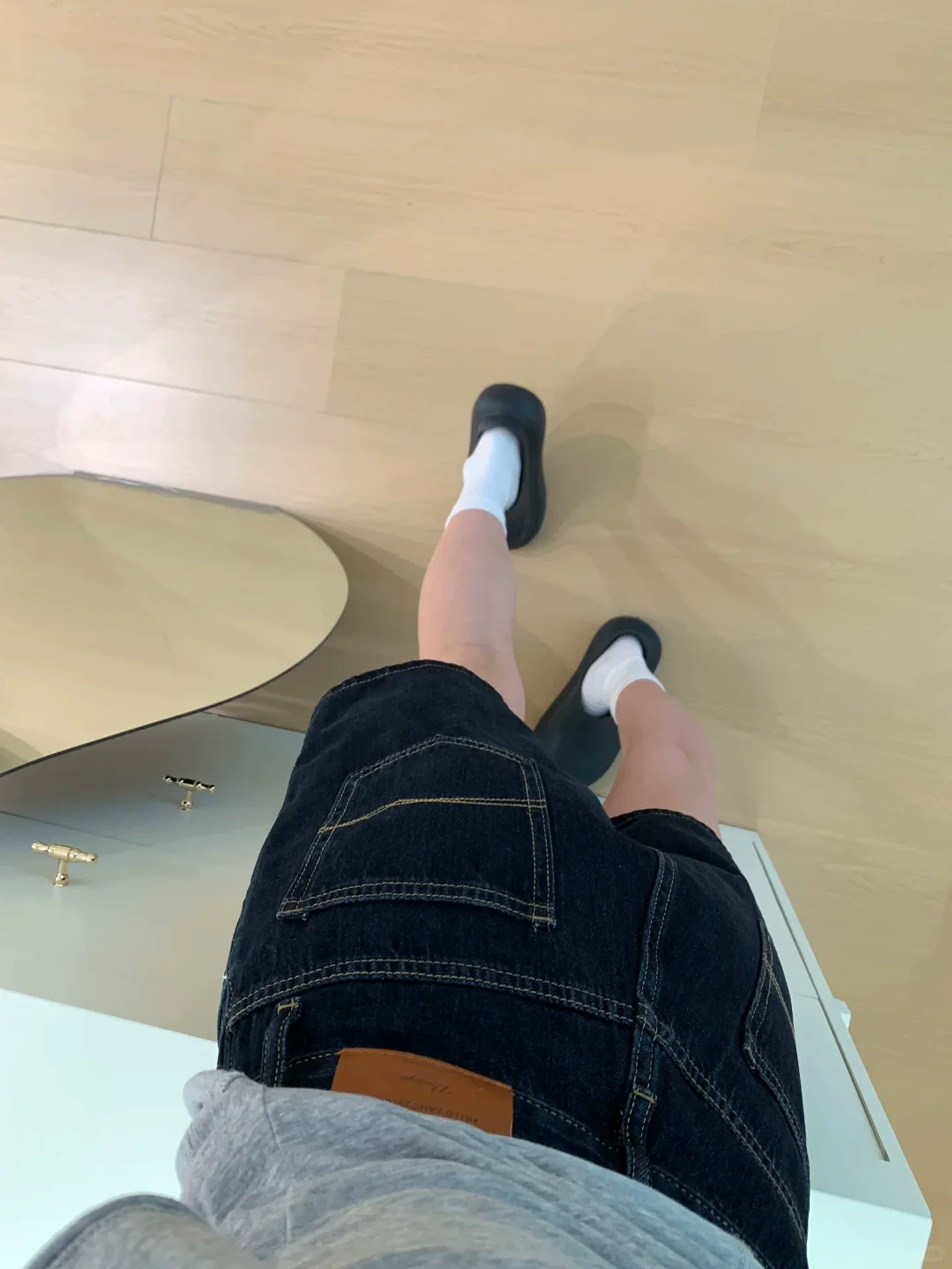 - Quần short denim màu xanh đậm hình quả lê dành cho nữ, cỡ lớn mùa hè, cạp cao, che hông, quần ống rộng chữ A giảm béo