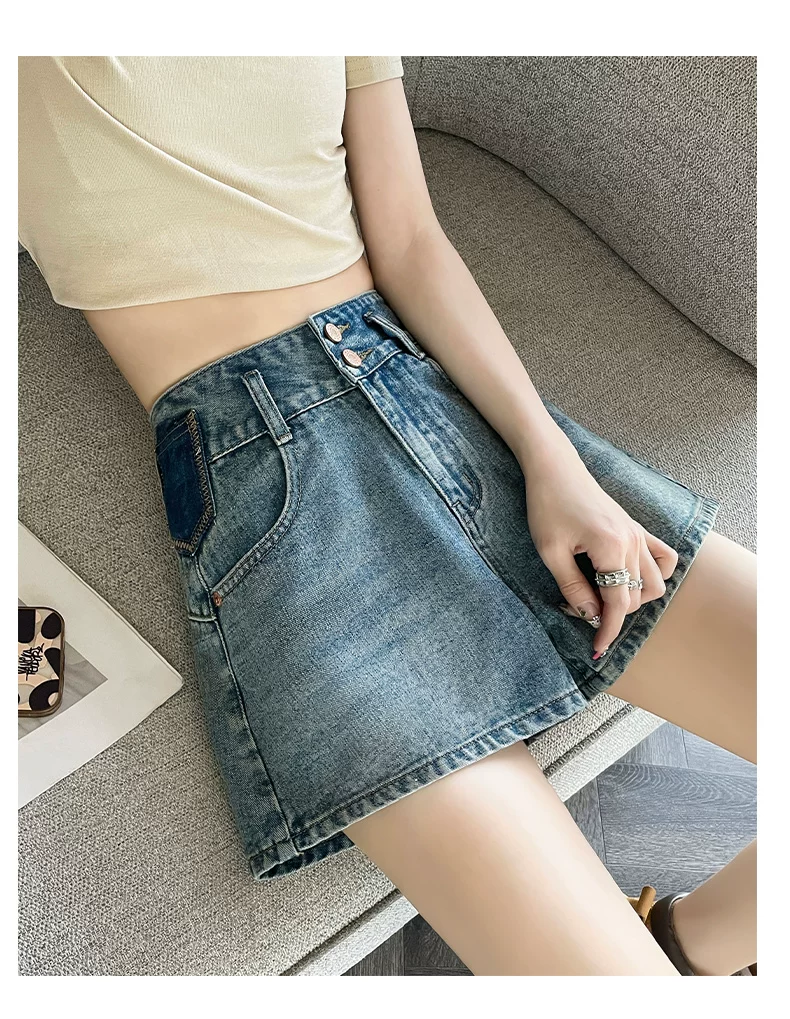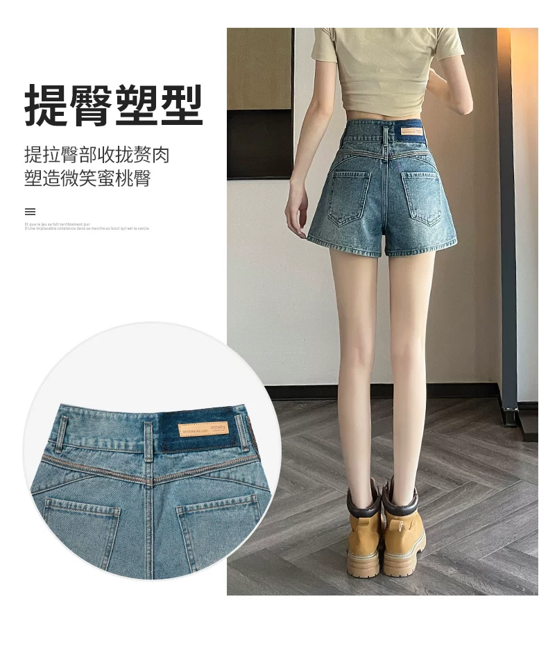 - Quần short denim nữ cho mùa hè, kiểu dáng mỏng, cỡ lớn, được thiết kế dành cho phụ nữ có đường cong, lưng cao, dáng rộng, giúp bạn trông cao và thon gọn hơn, quần ống rộng kiểu chữ A.