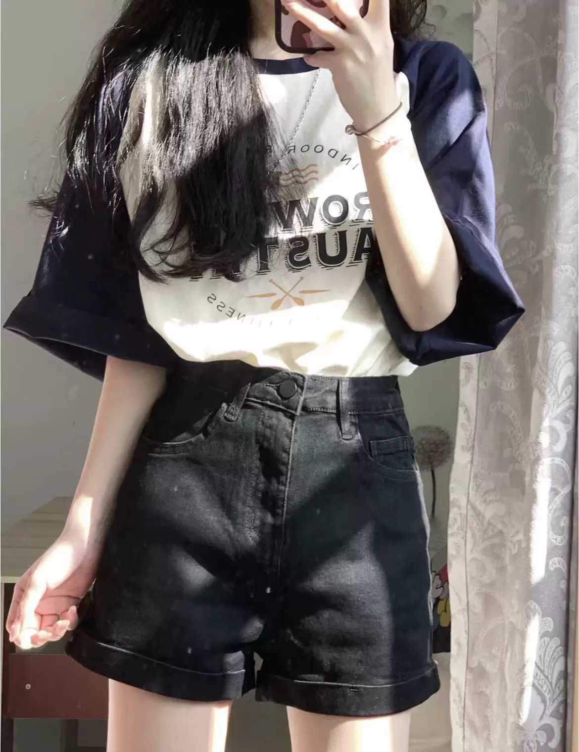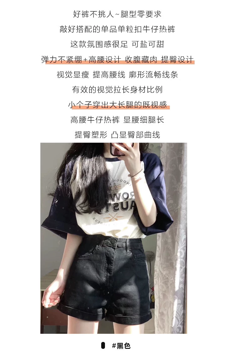 - Quần short denim nữ dáng quả lê nhỏ nhắn dành cho mùa hè, cỡ lớn, lưng cao, co giãn, che hông, quần chữ A tôn dáng thon gọn