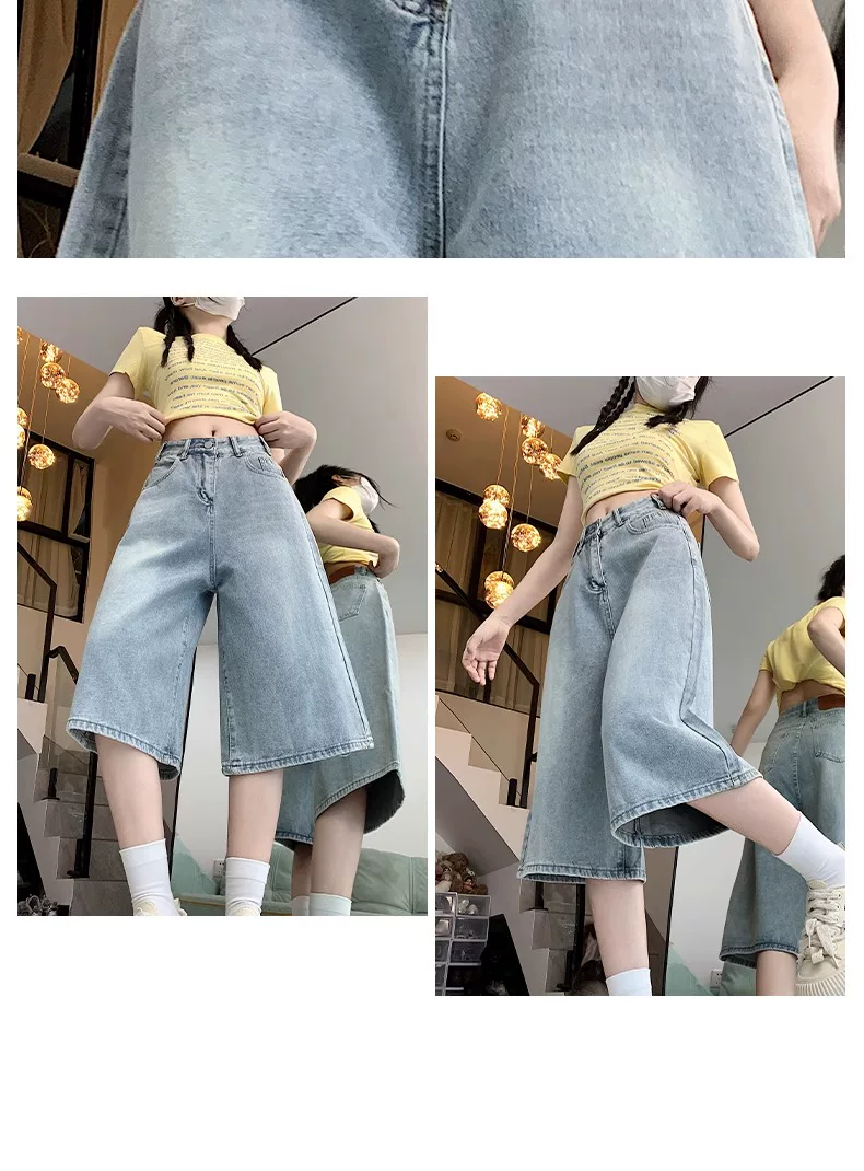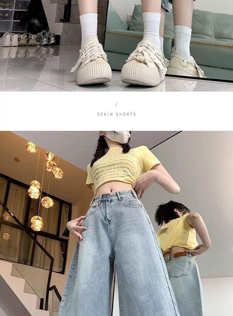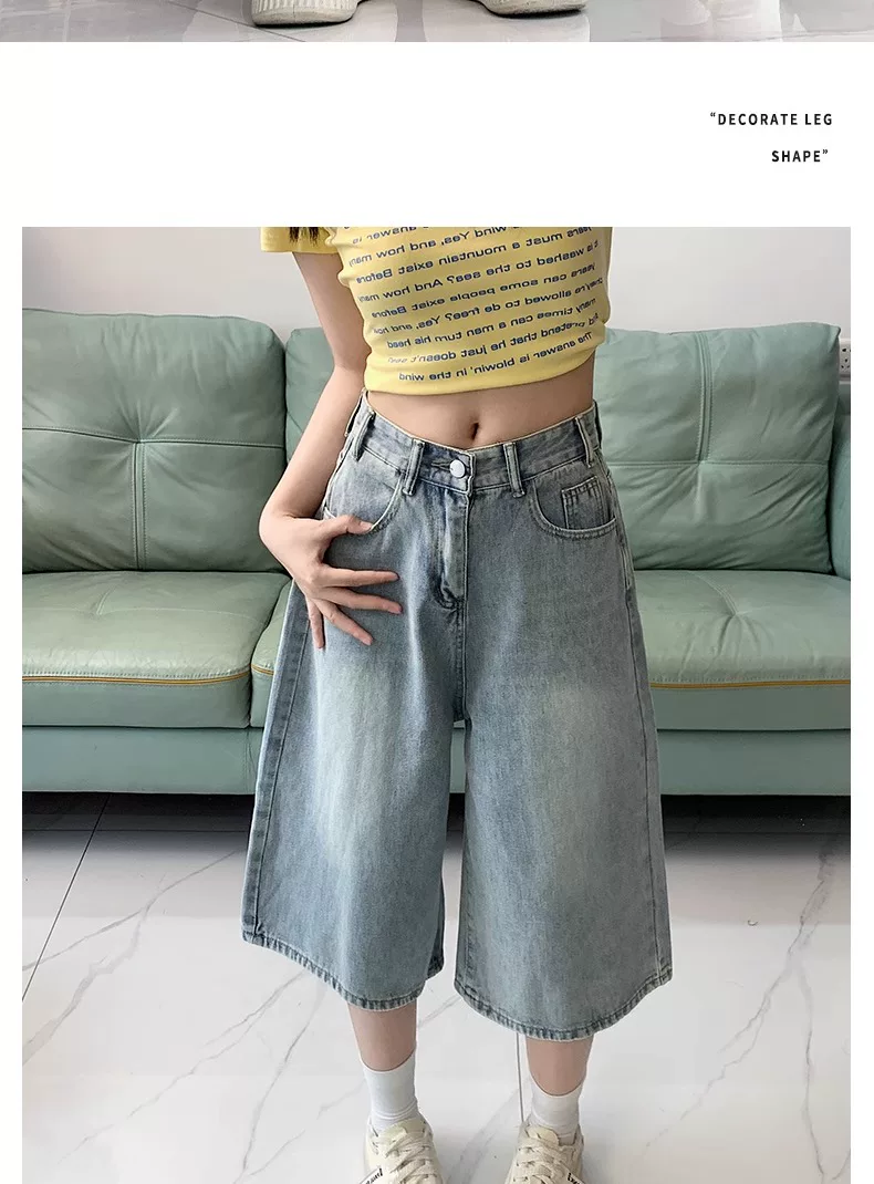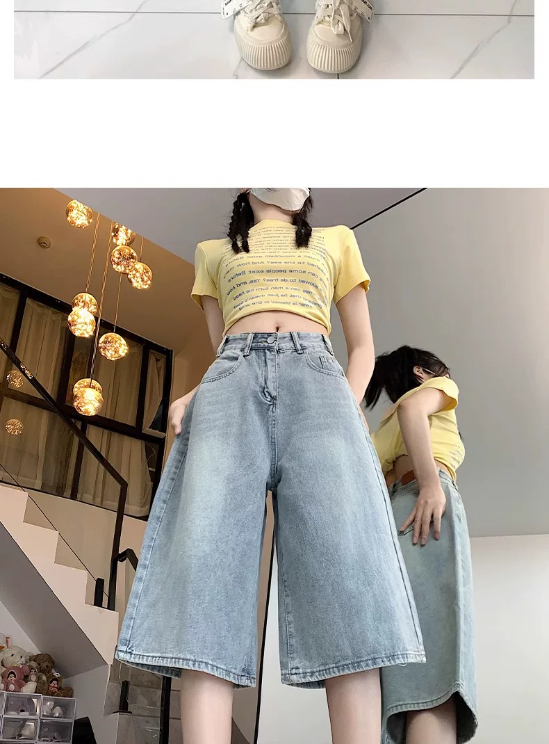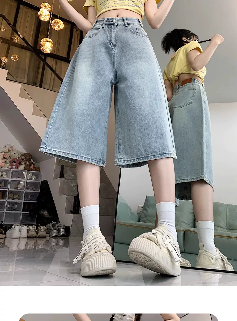- Quần short denim ống rộng, màu sáng, kiểu retro dành cho nữ, mùa hè 2025, size lớn, cạp cao, dáng rộng, tôn dáng, quần ống thẳng.
