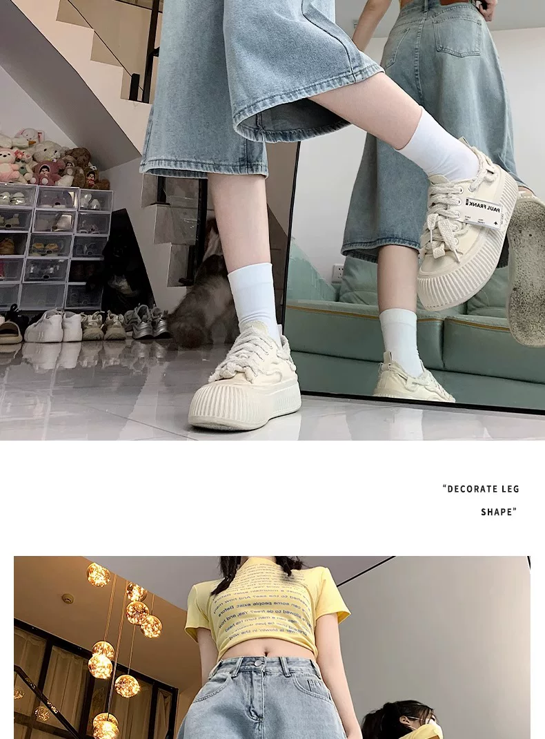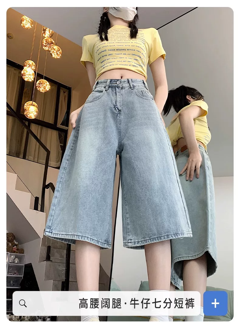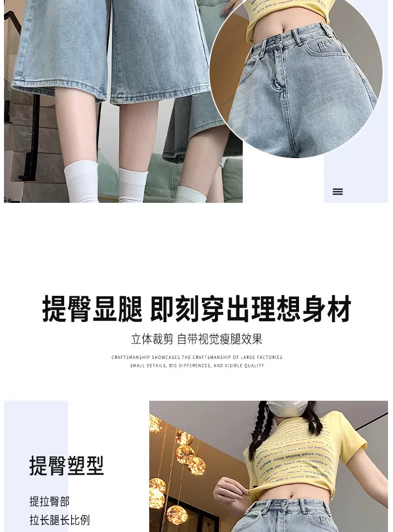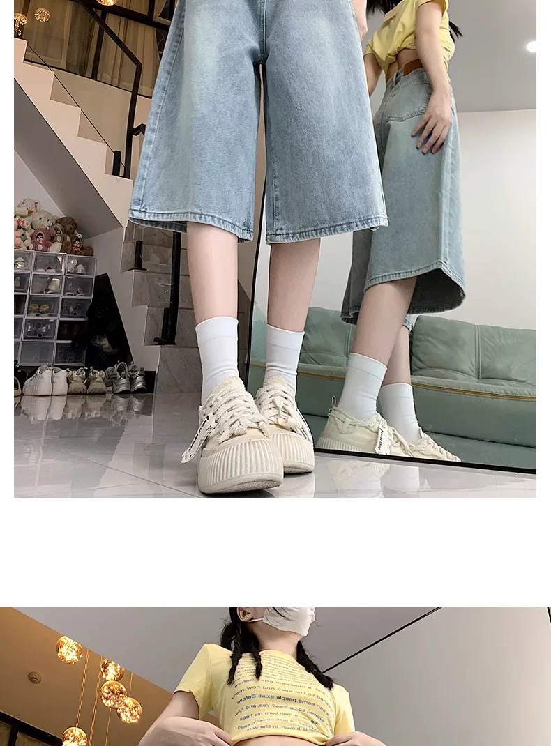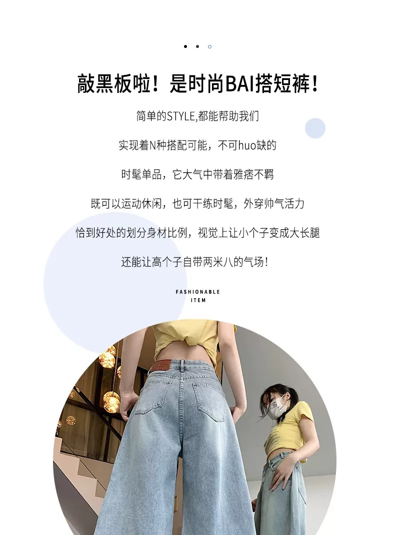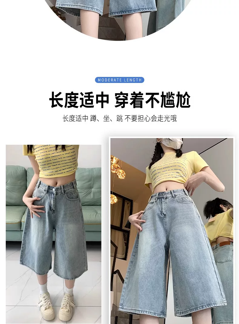 - Quần short denim ống rộng, màu sáng, kiểu retro dành cho nữ, mùa hè 2025, size lớn, cạp cao, dáng rộng, tôn dáng, quần ống thẳng.