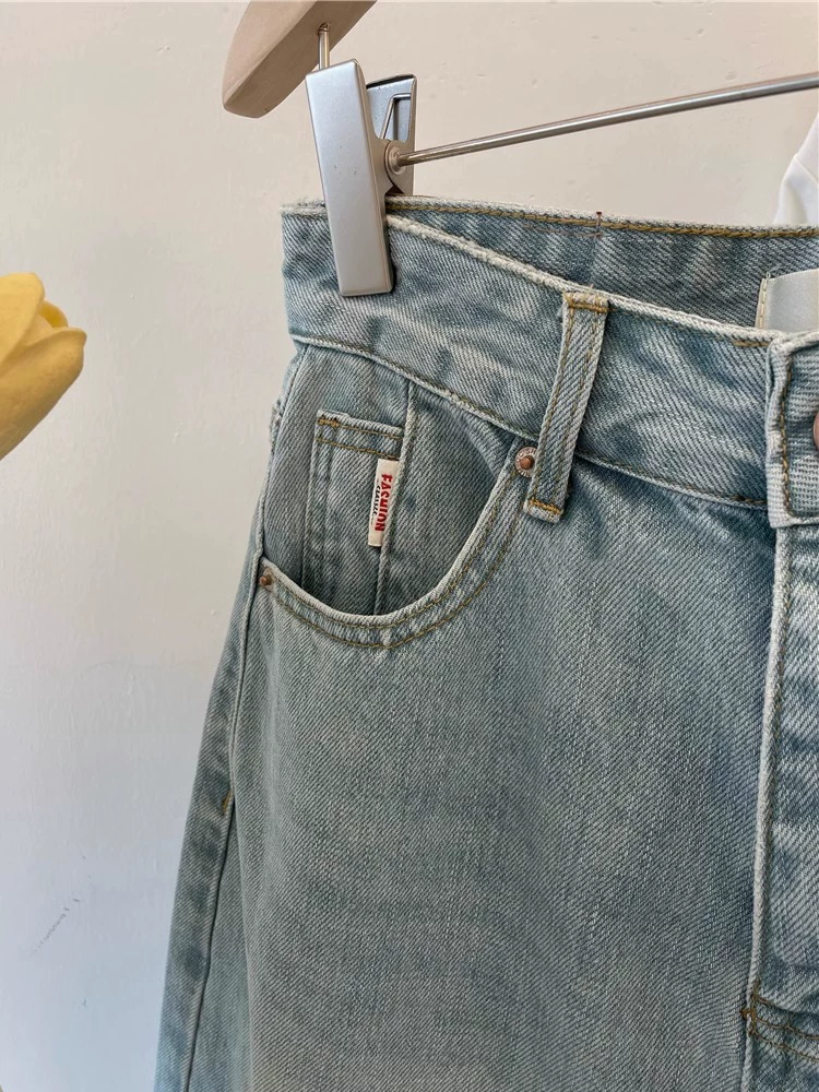 - Quần short denim ống thẳng màu sáng dành cho nữ, mùa hè, cỡ lớn, lưng cao, dáng rộng, tôn dáng, đa năng, quần short ống rộng dài đến đầu gối kiểu chữ A.