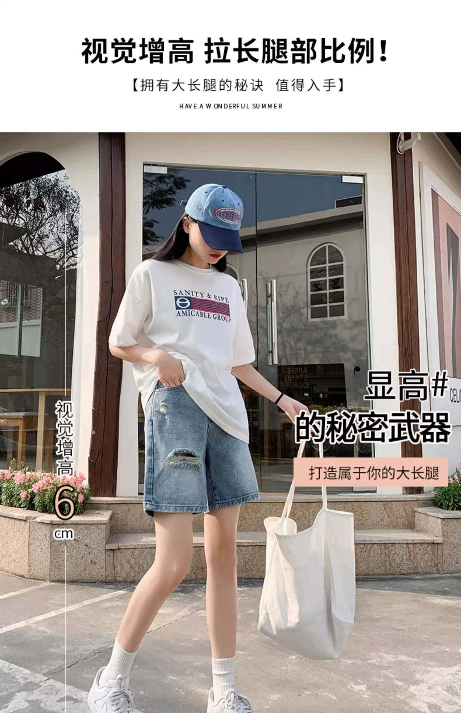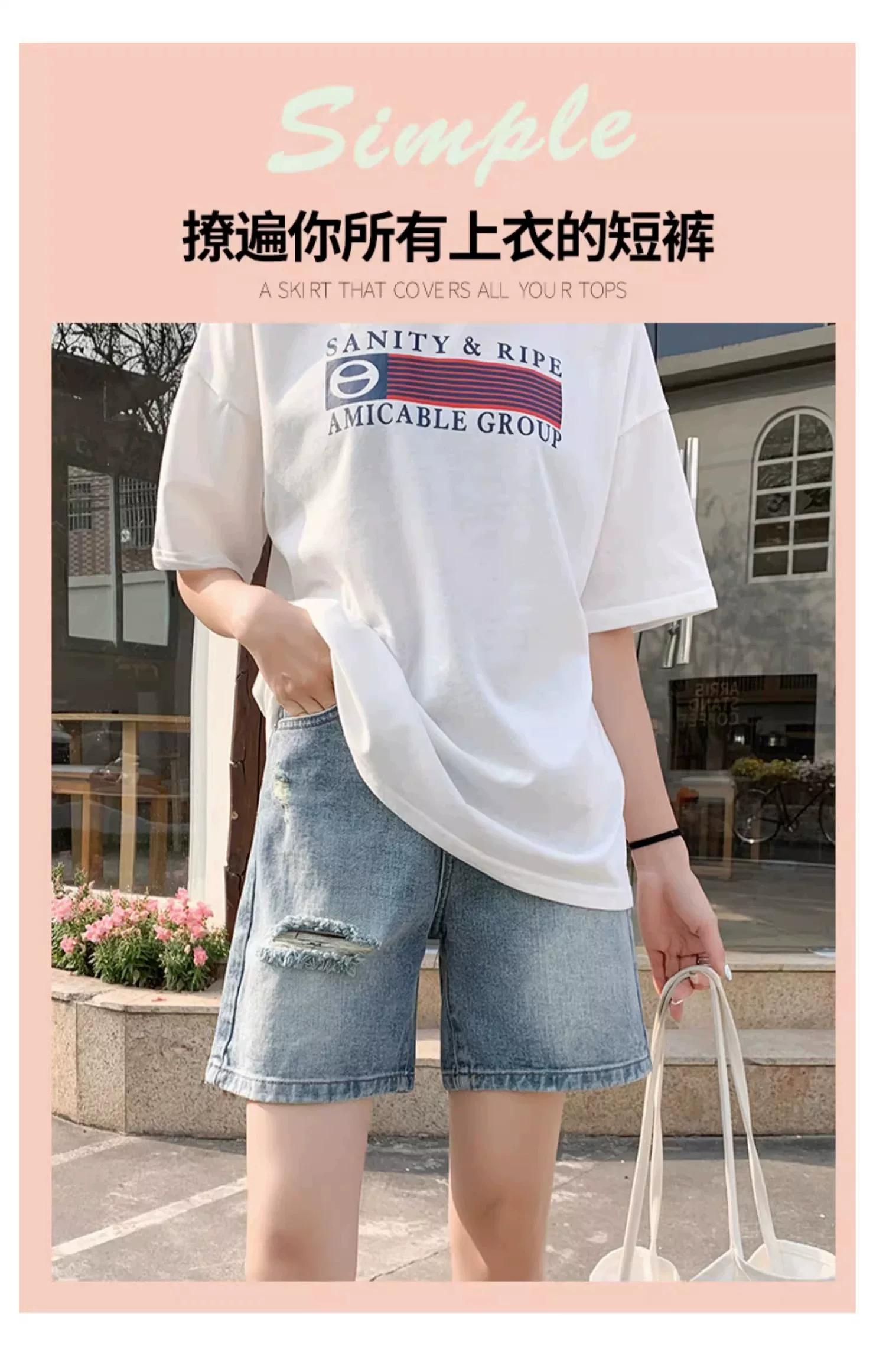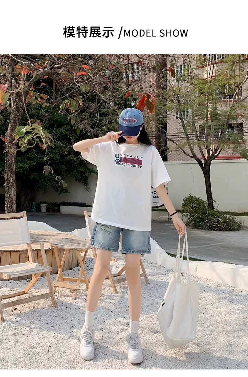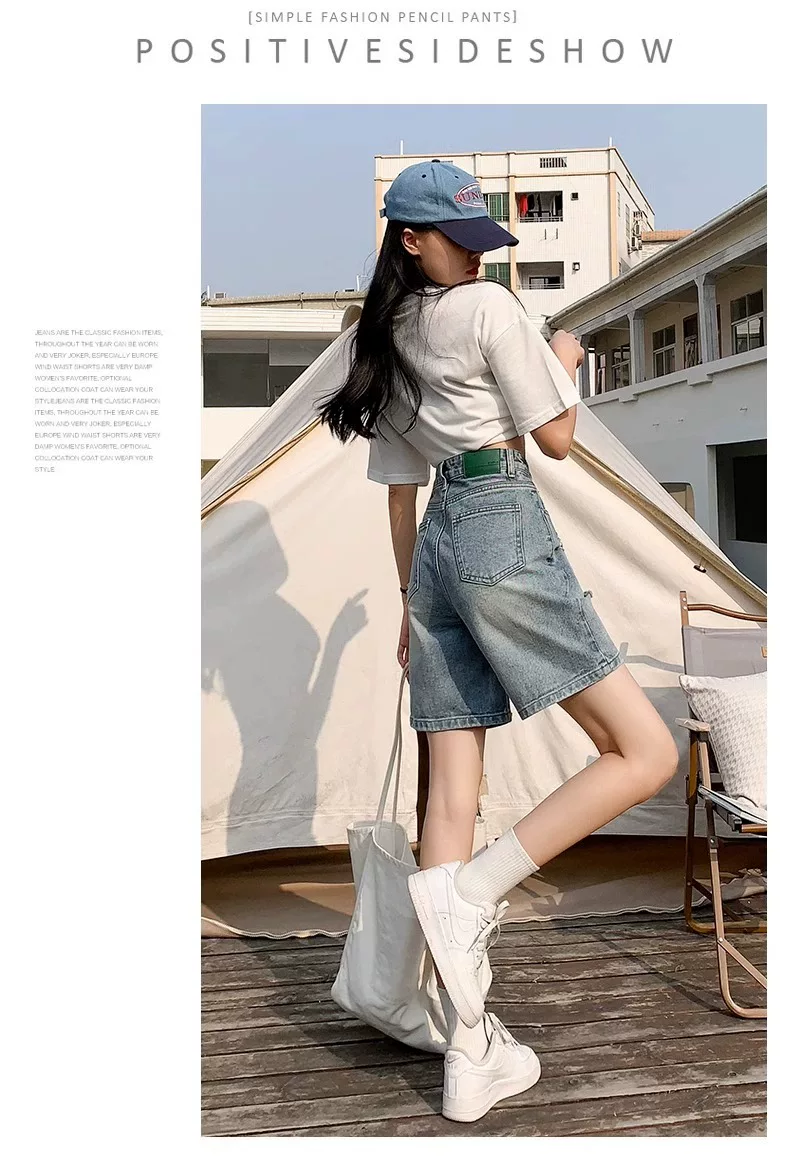 - Quần short denim rách dáng quả lê dành cho nữ, size lớn mùa hè, cạp cao, dáng rộng, tôn dáng, ống thẳng, ống rộng, quần short dài đến giữa đùi.