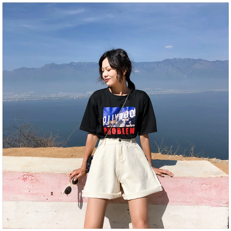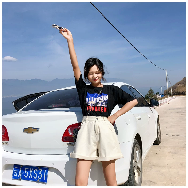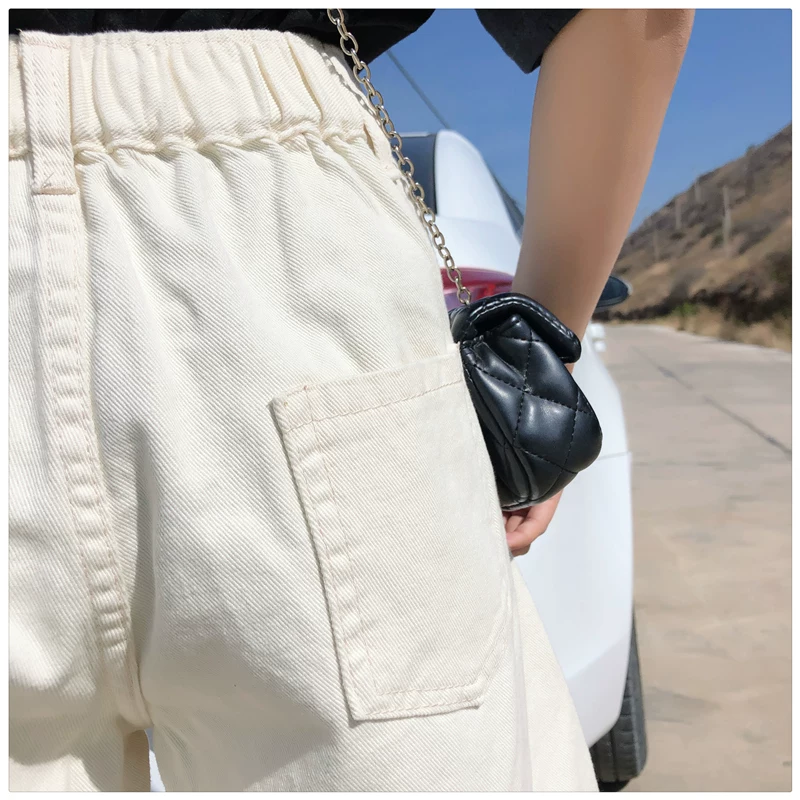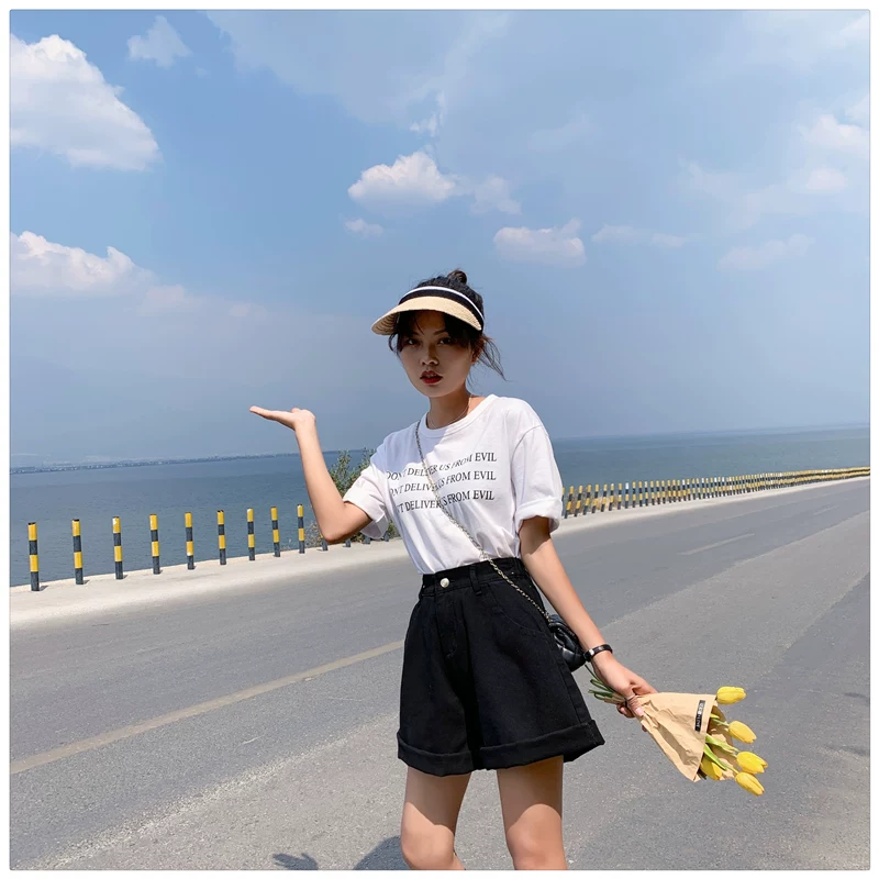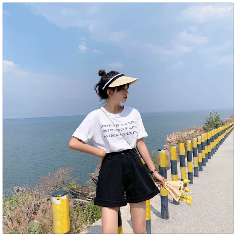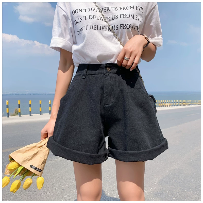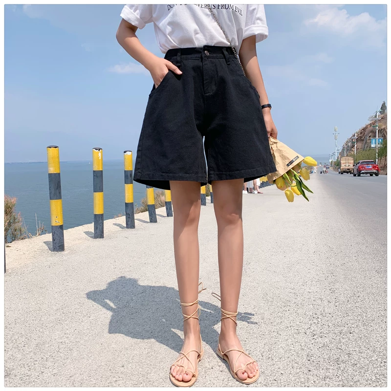 - Quần short denim trắng dáng quả lê dành cho nữ, size lớn mùa hè, cạp cao, dáng rộng, tôn dáng, quần ống rộng dáng chữ A năm điểm