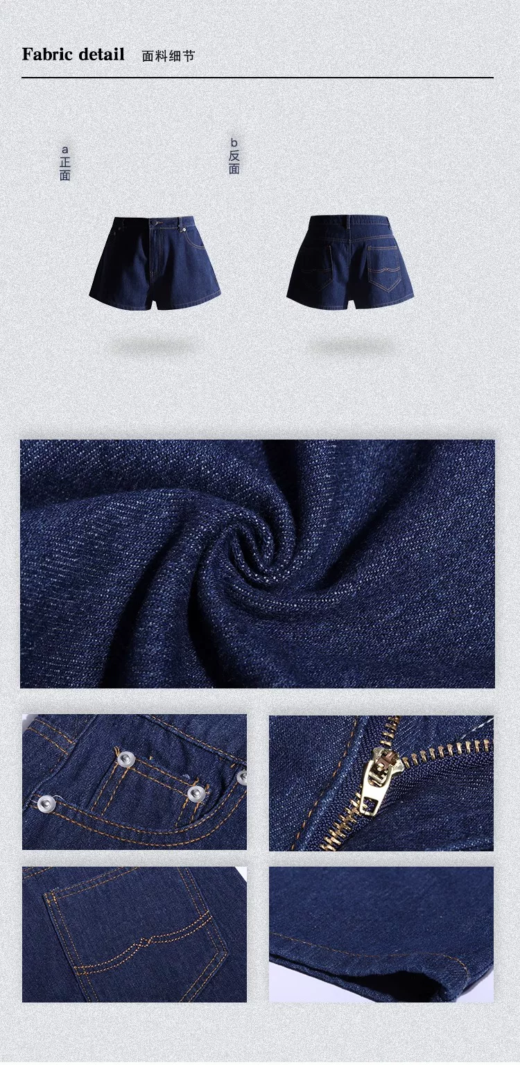 - Quần short denim xanh A-line nữ mùa hè 2025, size lớn, cạp cao, dáng rộng, che hông, tôn dáng, ống rộng, quần short thời trang
