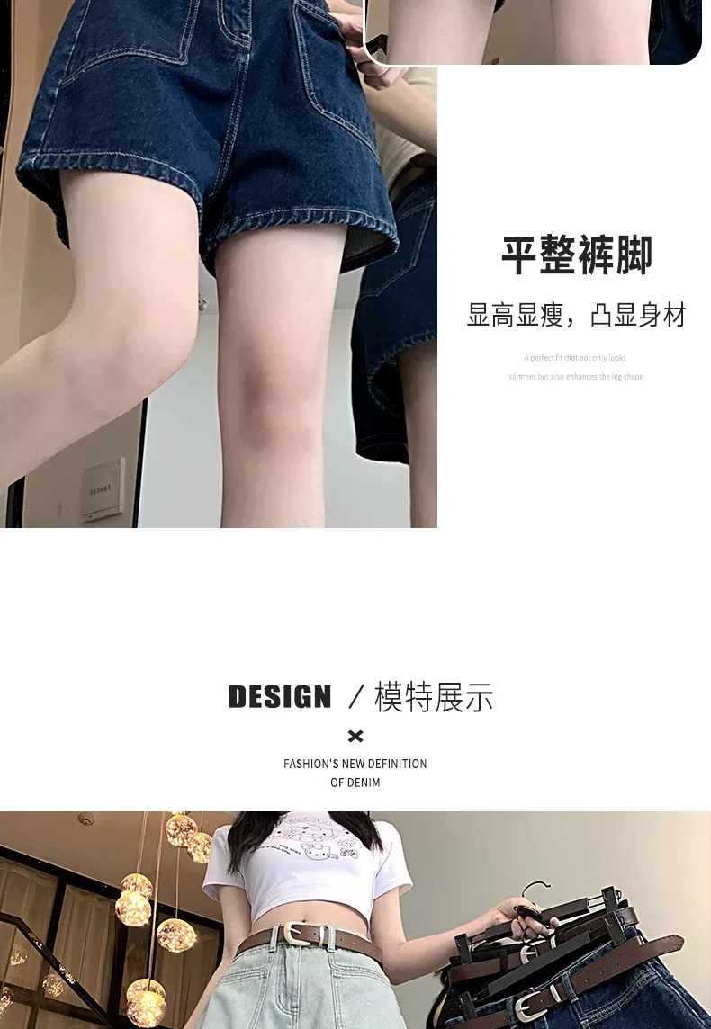 - Quần short denim xanh đậm dành cho nữ, kiểu mới hè 2025, size lớn, cạp cao, che hông, tôn dáng, dáng chữ A, ống rộng, quần short thời trang.