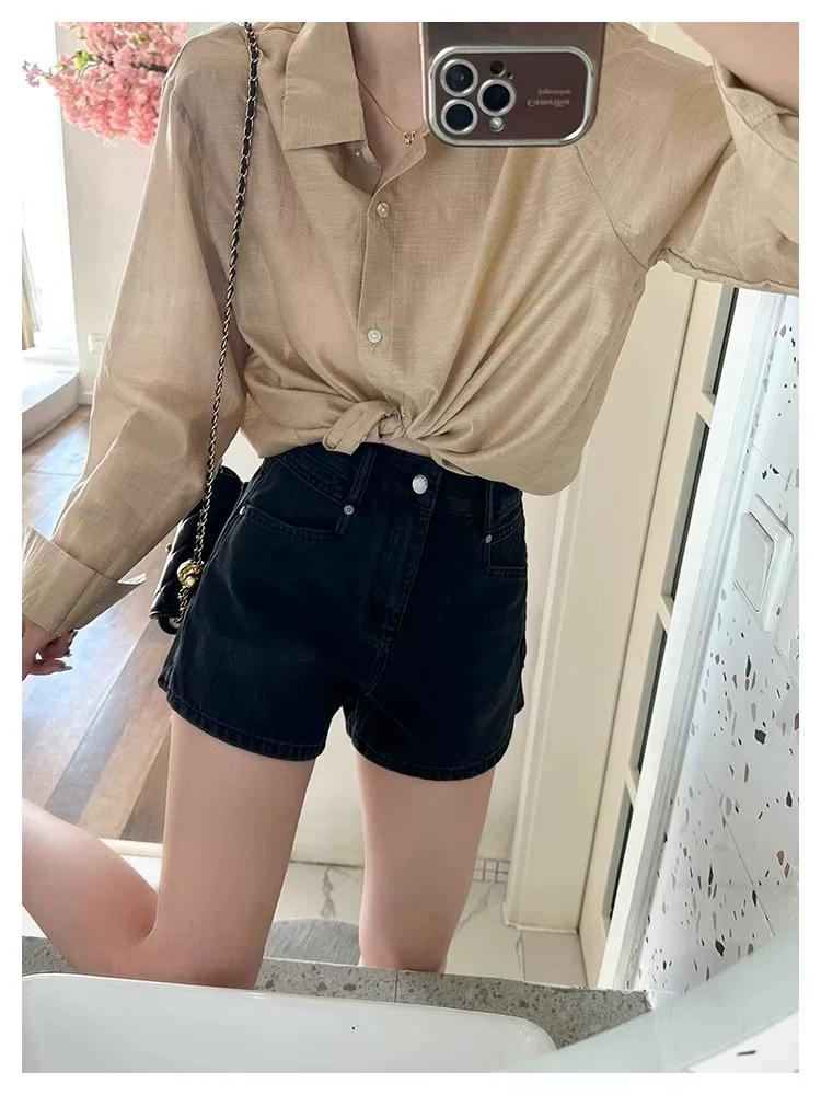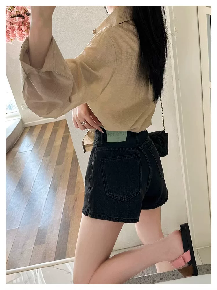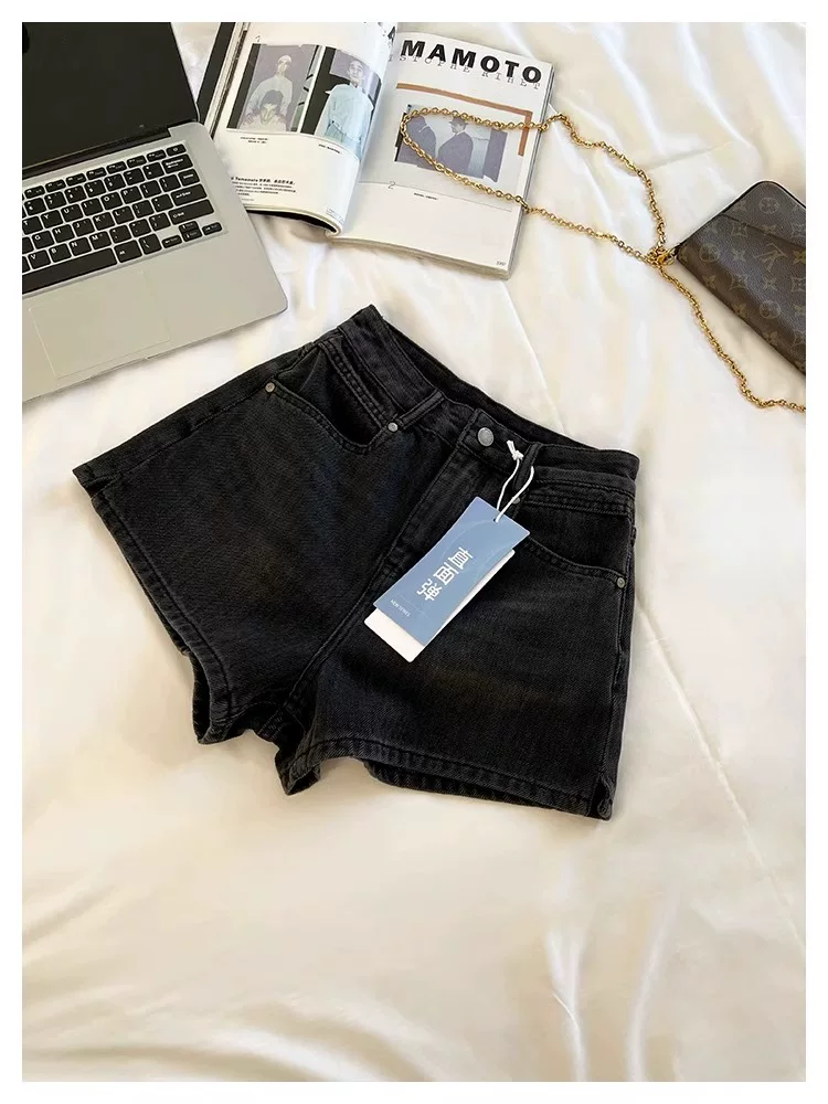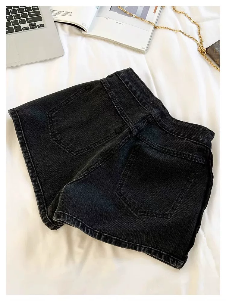 Quần short denim xẻ tà lưng cao dáng quả lê dành cho nữ, size lớn mùa hè, dáng nhỏ nhắn, co giãn, quần chữ A tôn dáng