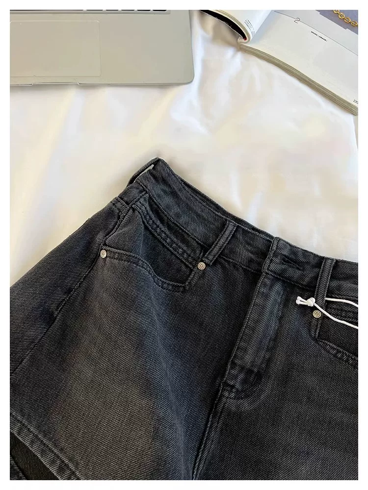 - Quần short denim xẻ tà lưng cao dáng quả lê dành cho nữ, size lớn mùa hè, dáng nhỏ nhắn, co giãn, quần chữ A tôn dáng