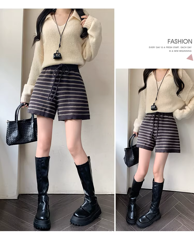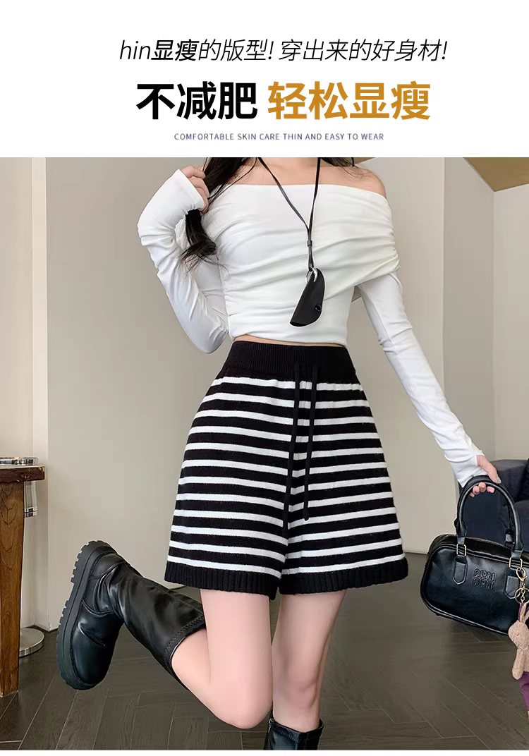 Quần short dệt kim cho nữ, quần len sọc mùa thu đông, quần rất sành điệu, quần bốt, quần len họa tiết đen trắng.