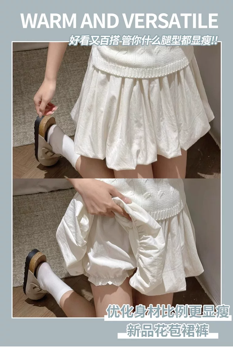 - Quần short hoa trắng dành cho nữ, cỡ lớn mùa hè, cạp cao, che hông, quần short váy chữ A thon gọn cho người nhỏ nhắn, váy ngắn phồng.