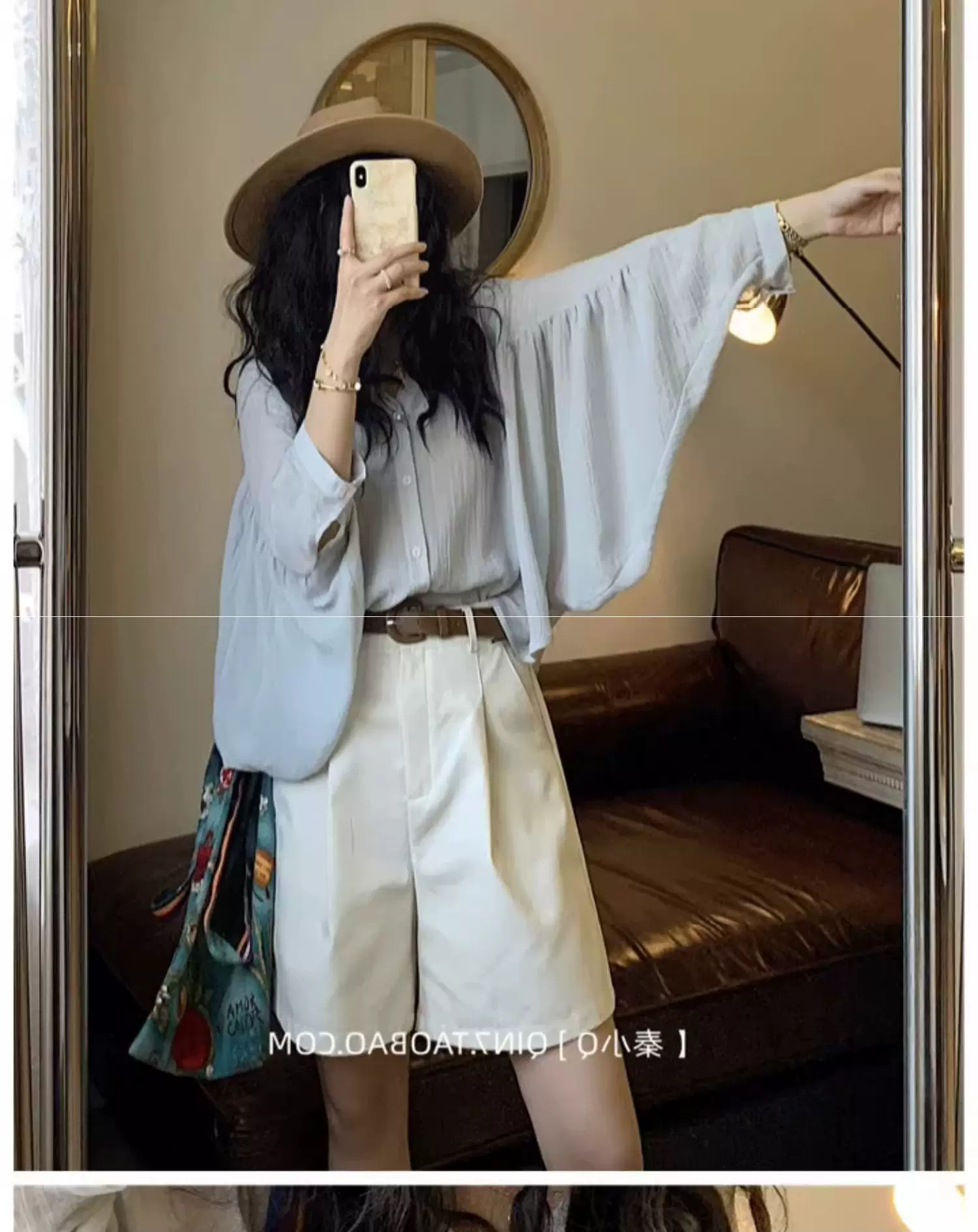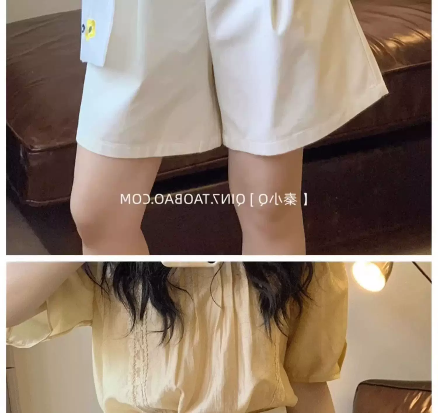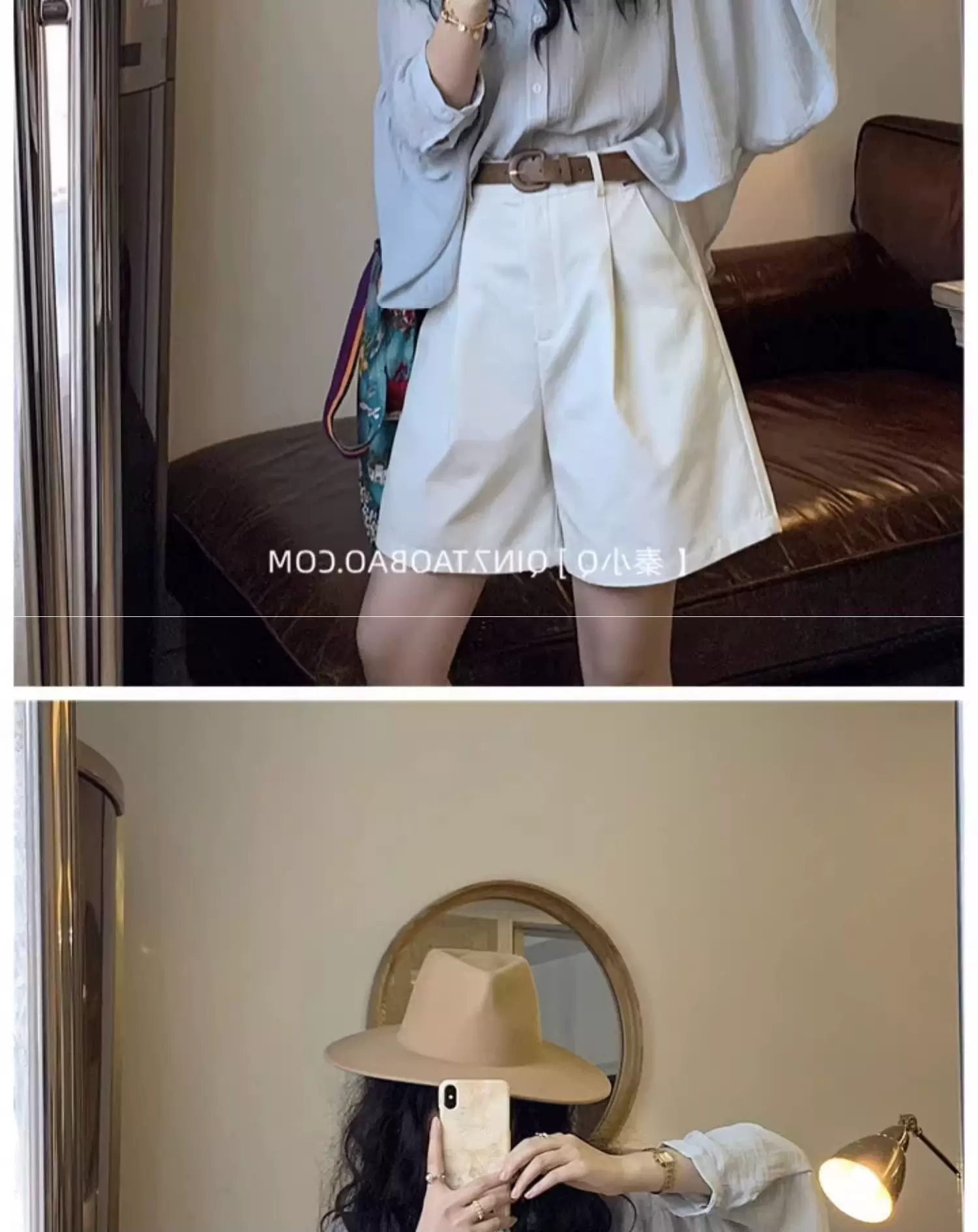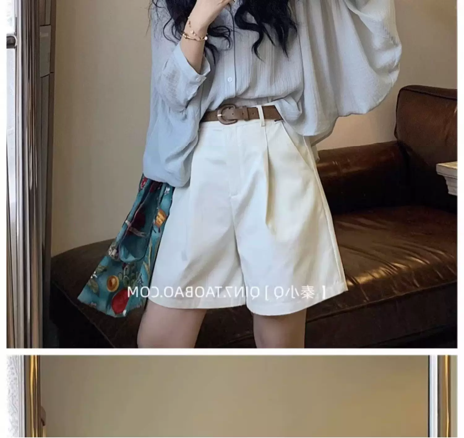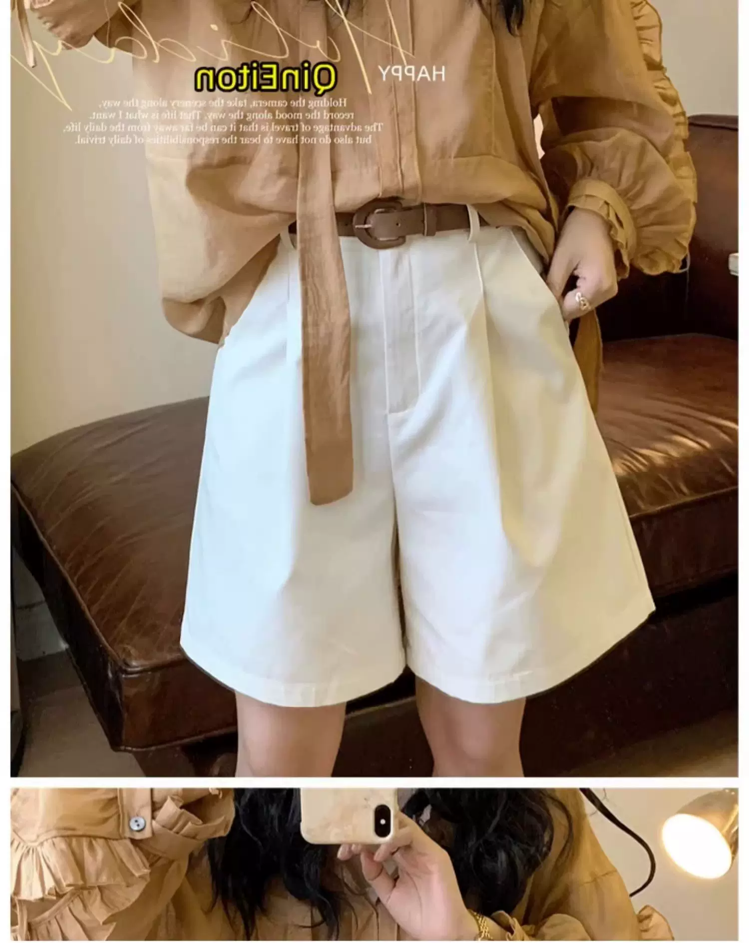 - Quần short kaki cạp cao thường ngày dành cho nữ, size lớn mùa hè, đa năng, tôn dáng, dáng thẳng, kiểu chữ A, dài ngang đùi, ống rộng.