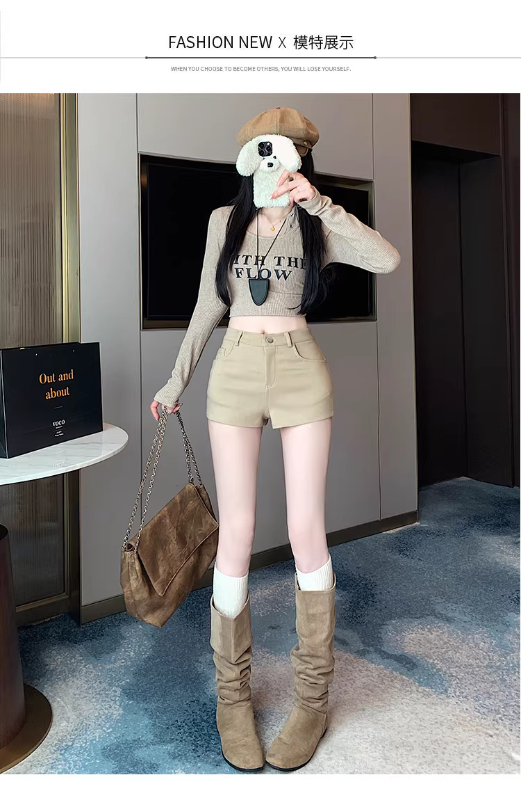 - Quần short kaki nữ, quần mùa xuân hè, quần lửng, quần short bó sát lưng cao co giãn mới năm 2025, quần short hot girl.