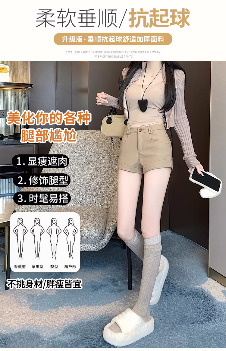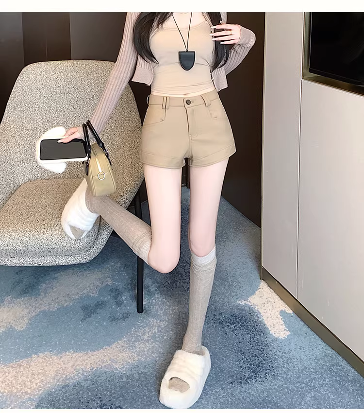 Quần short kaki nữ, thích hợp cho mùa xuân, mùa thu và mùa hè, cạp cao, bó sát, quần legging, quần short, quần short boot.