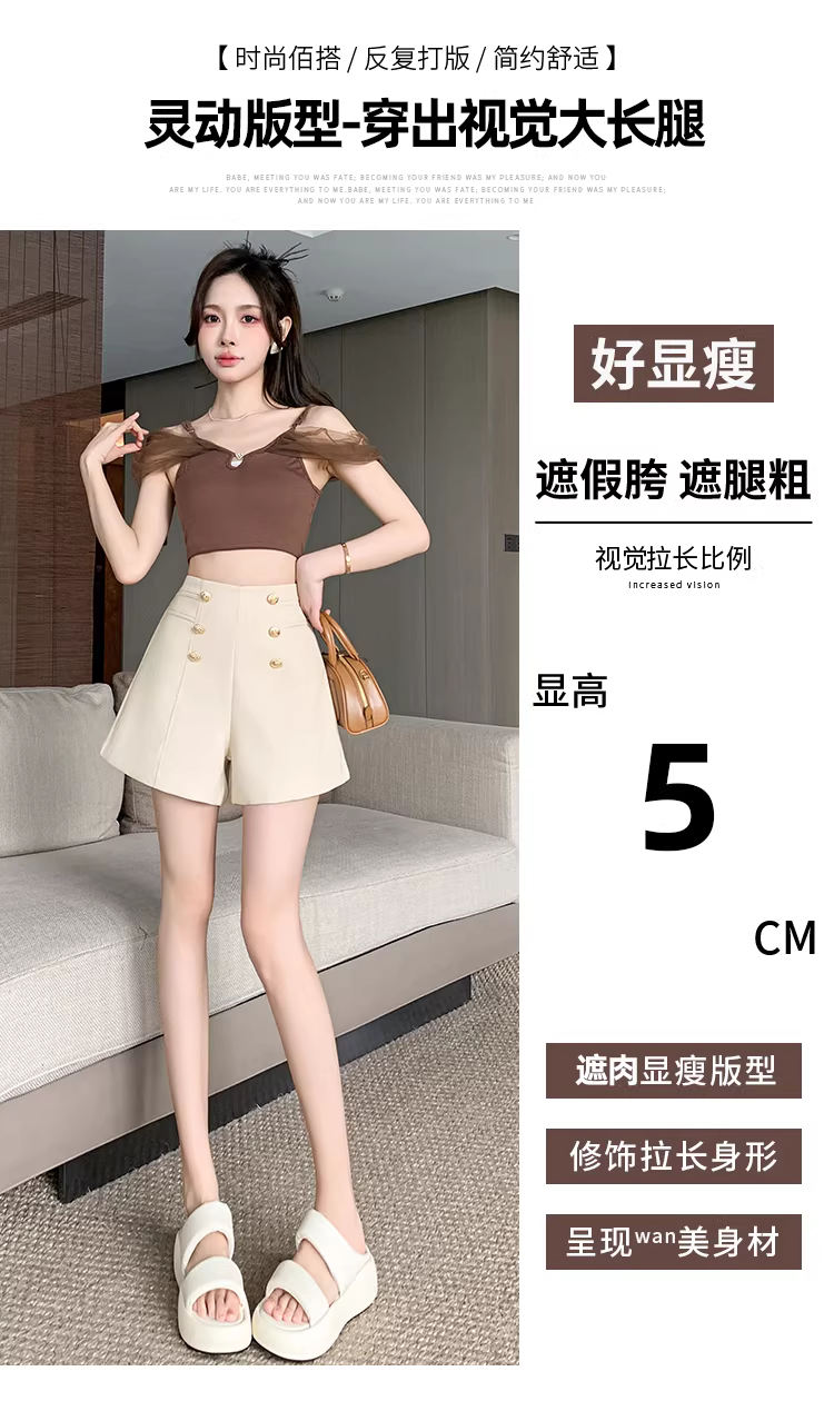 Quần short kaki nữ xuân thu, quần rất sành điệu, quần nữ cạp cao hai hàng khuy, quần short, quần ống loe.