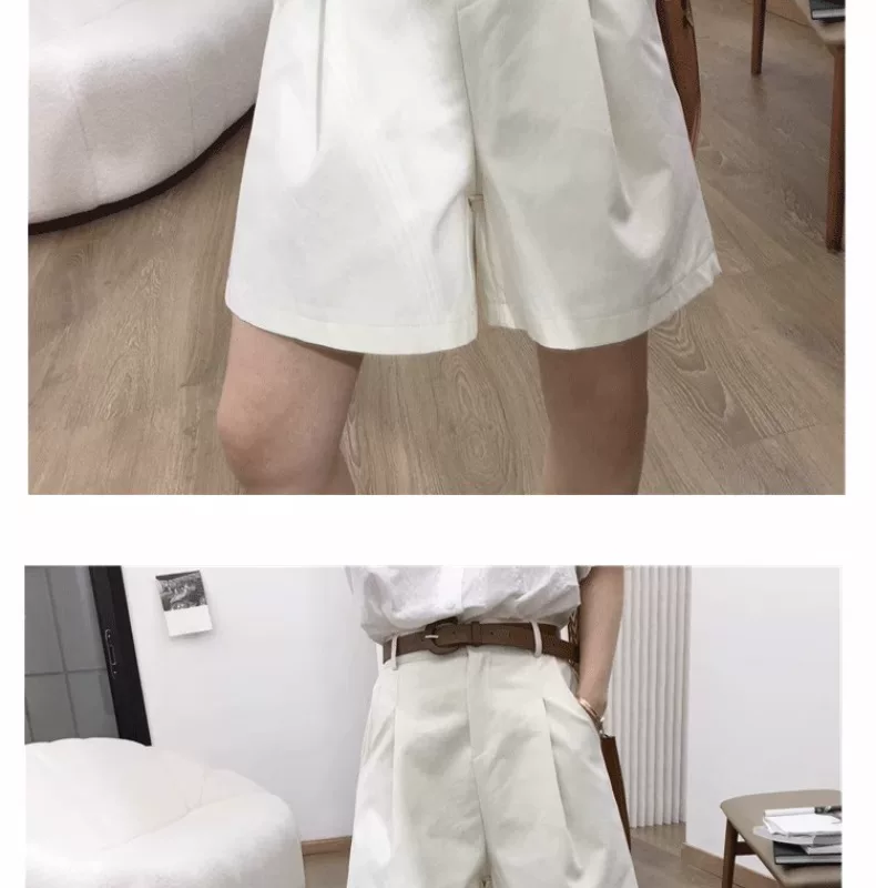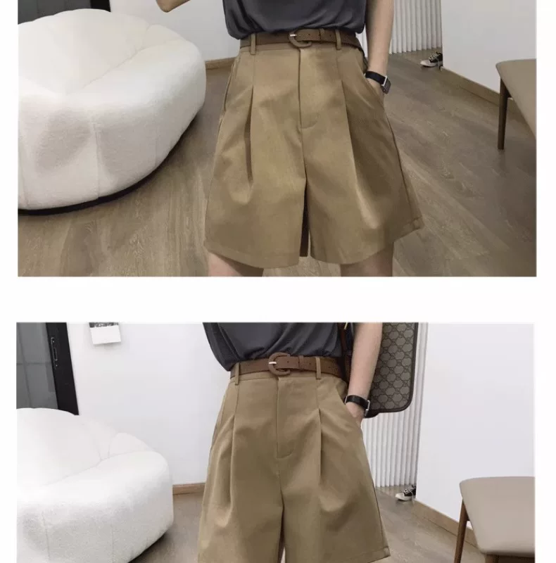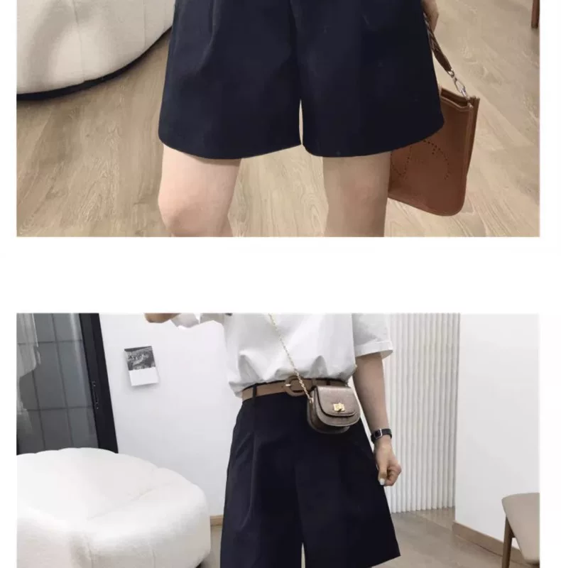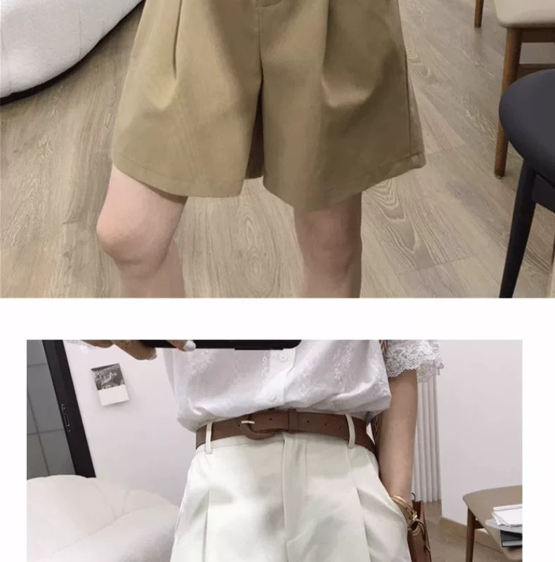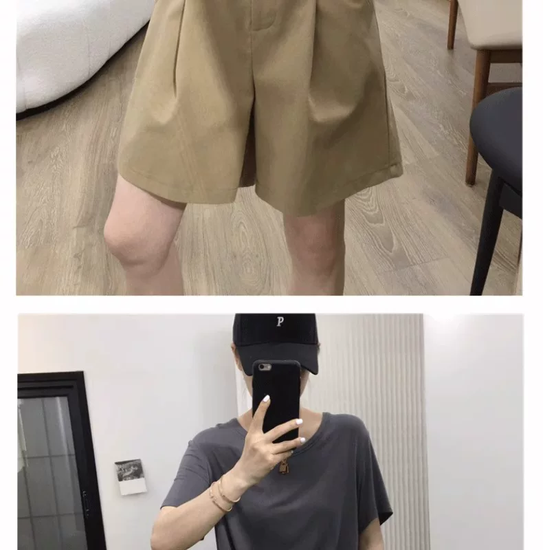 - Quần short kaki thường ngày dành cho nữ, kiểu dáng mỏng mùa hè, cỡ lớn, lưng cao, che hông, dáng suôn, tôn dáng, quần short dài ngang đùi dáng rộng năm điểm.