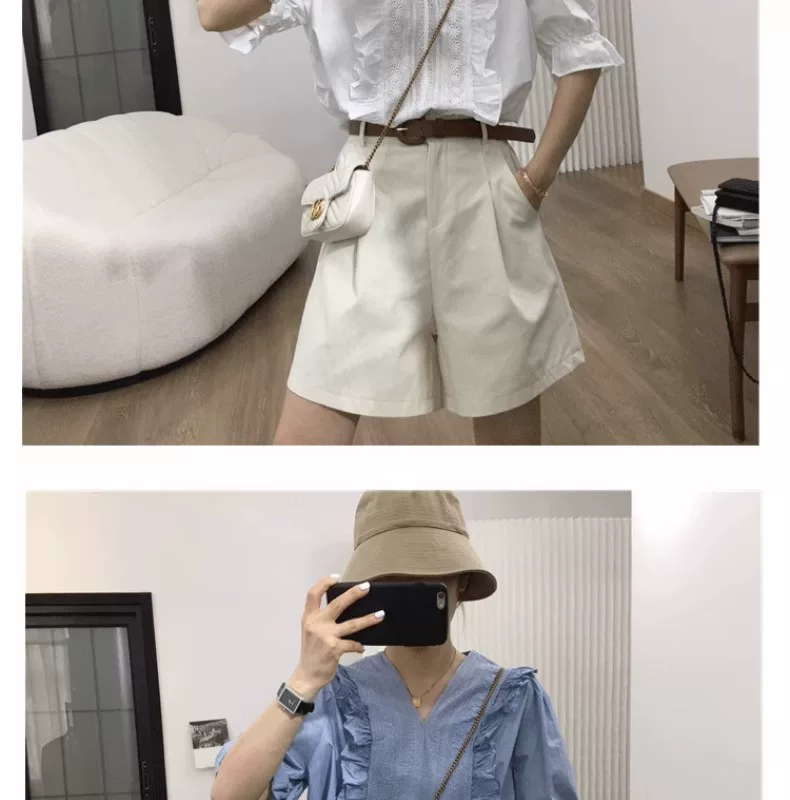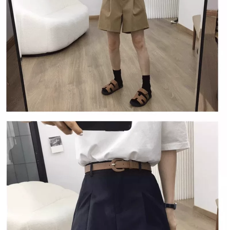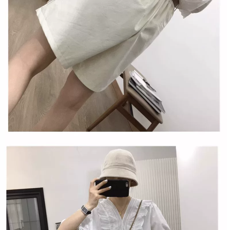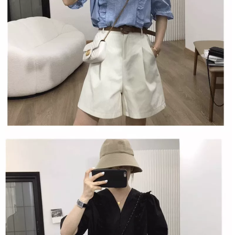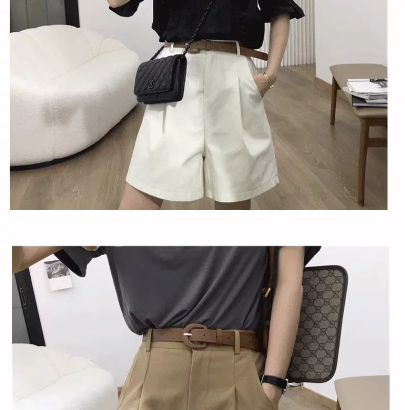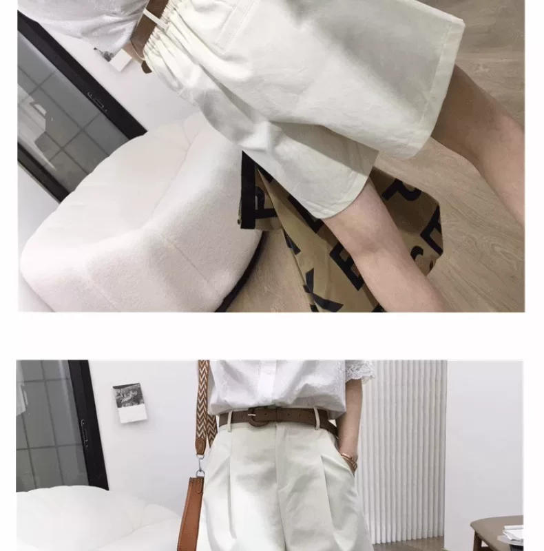 - Quần short kaki thường ngày dành cho nữ, kiểu dáng mỏng mùa hè, cỡ lớn, lưng cao, che hông, dáng suôn, tôn dáng, quần short dài ngang đùi dáng rộng năm điểm.