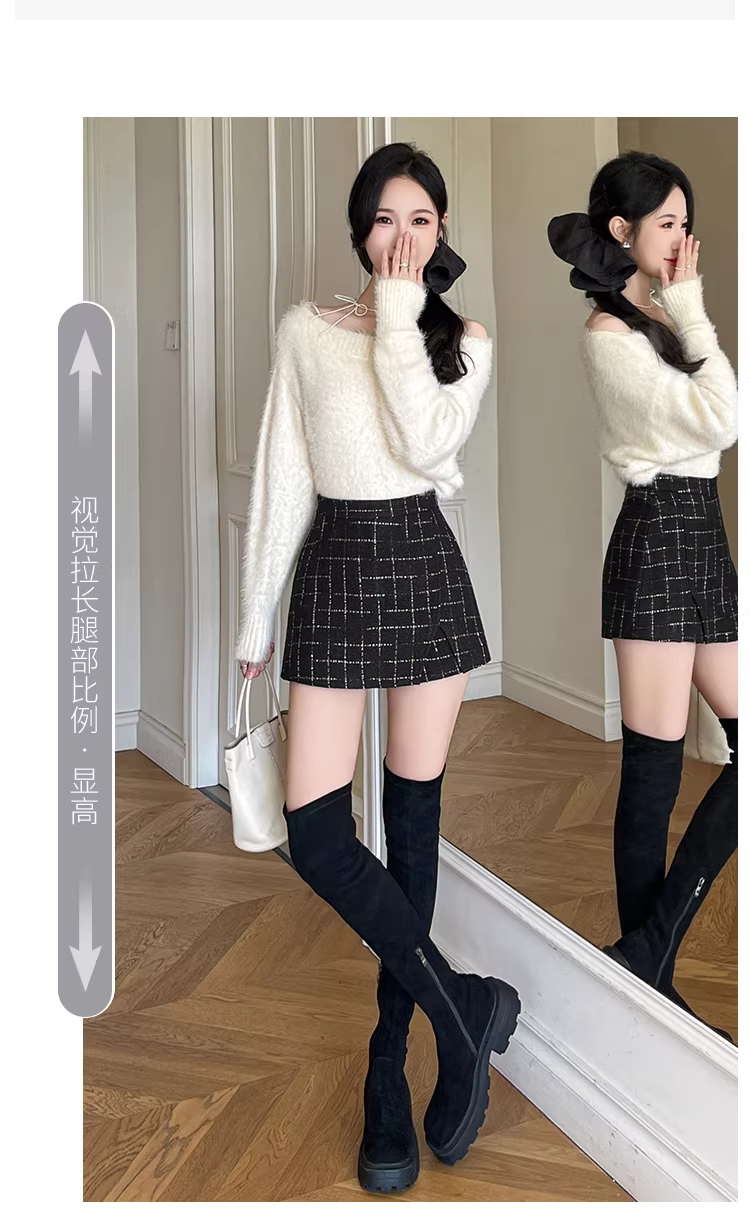 Quần short kiểu Chanel dành cho nữ, quần váy xẻ tà mùa thu đông, kiểu dáng hai mảnh, quần váy rất xinh, quần Martin cạp cao.