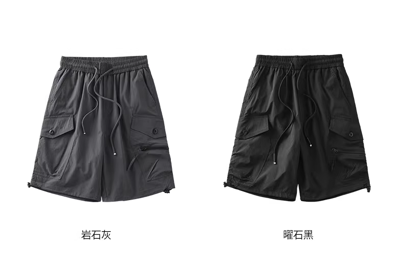 Quần short làm việc bằng vải lụa băng dành cho nam, kiểu dáng mỏng mùa hè ngoài trời có túi lớn, quần năm điểm kiểu dáng thể thao rộng rãi, nhanh khô theo phong cách Mỹ.