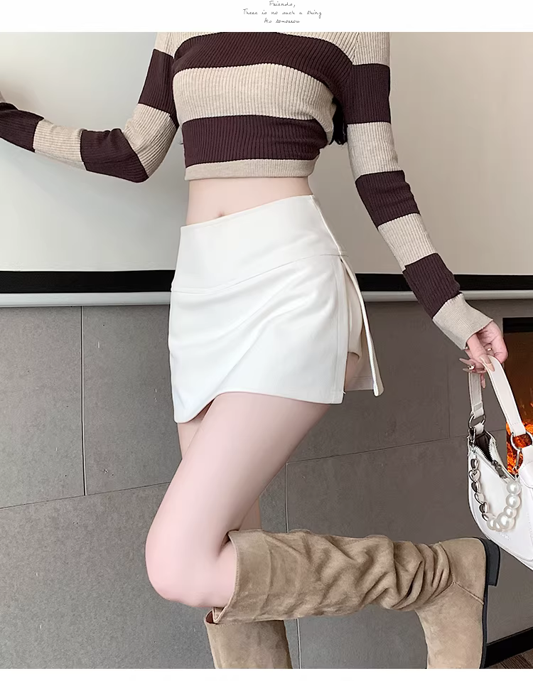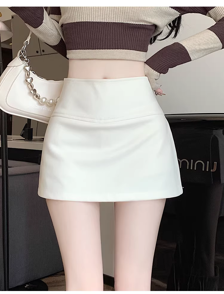 - Quần short len màu trắng nhạt dành cho nữ, áo khoác ngoài mùa thu đông, quần váy xẻ tà quần váy len hai trong một, quần bốt cạp cao hot girl