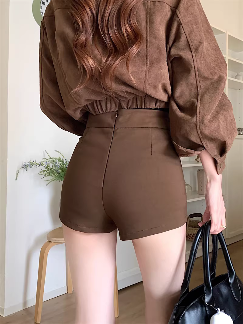 Quần short màu nâu dành cho nữ, thích hợp cho mùa xuân, mùa thu và mùa đông, quần sành điệu và hấp dẫn, quần bó sát, quần ngắn gợi cảm, quần short bốt.