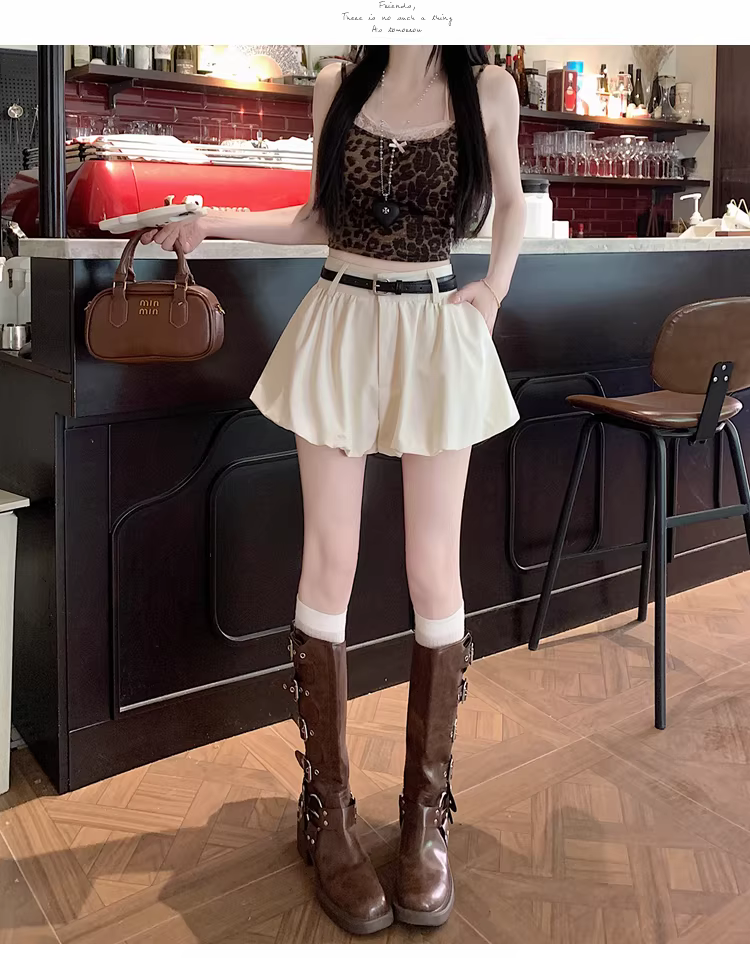 Quần short màu trắng nhạt dành cho nữ, quần nữ mùa hè, quần váy đèn lồng, quần váy kiểu múa ba lê, quần ngắn cực ngắn cạp cao