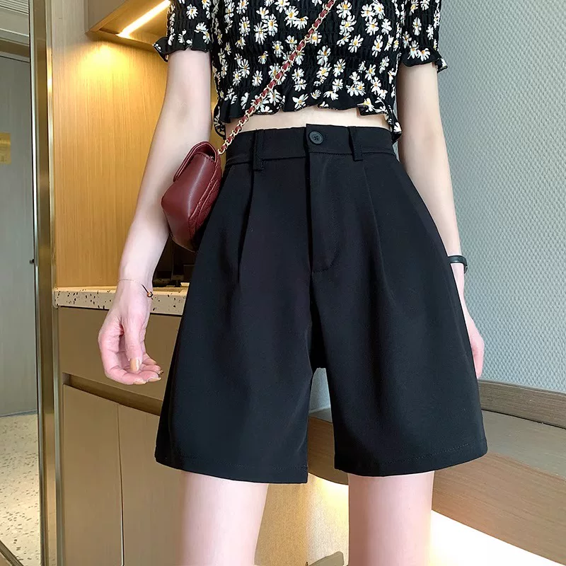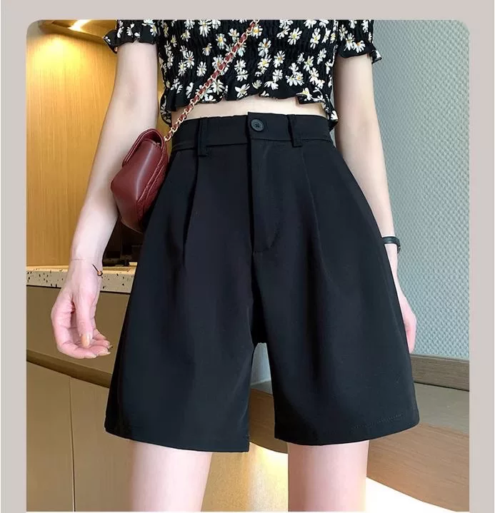 - Quần short mùa hè dành cho nữ, cỡ lớn, cạp cao, che hông, giảm béo, dáng quả lê, ống rộng thẳng, quần dài vừa phải