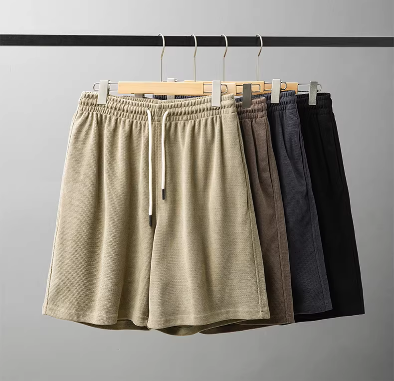 Quần short nam chất liệu chenille dày dặn, kiểu dáng mới hè 2024, phong cách retro Mỹ, dáng rộng, thể thao và cao cấp, kiểu năm phần.