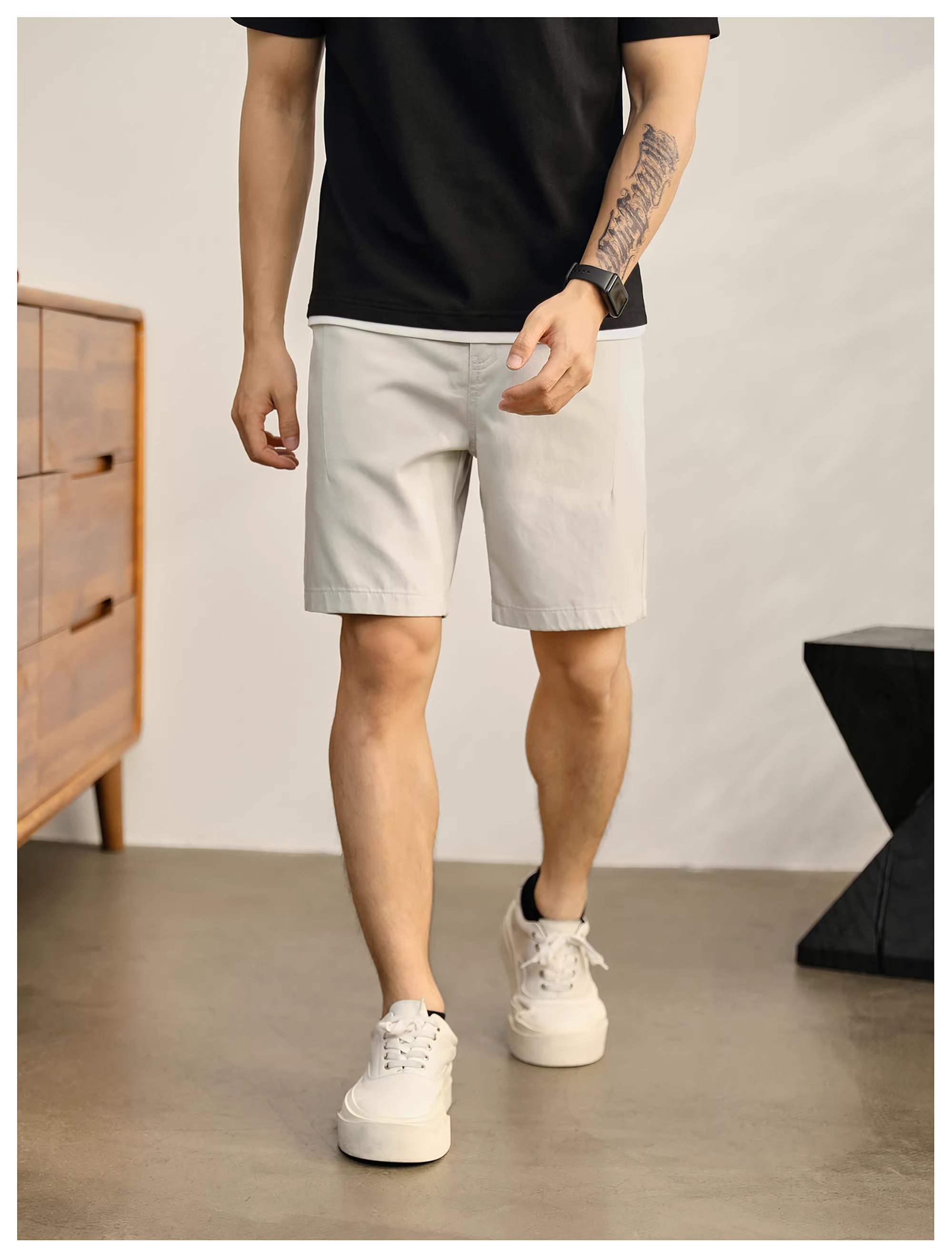 - Quần short nam dáng thẳng kiểu dáng giản dị của LUUD quần short nam dáng thẳng mùa hè thân thiện với làn da lyocell thời trang quần dài vừa phải