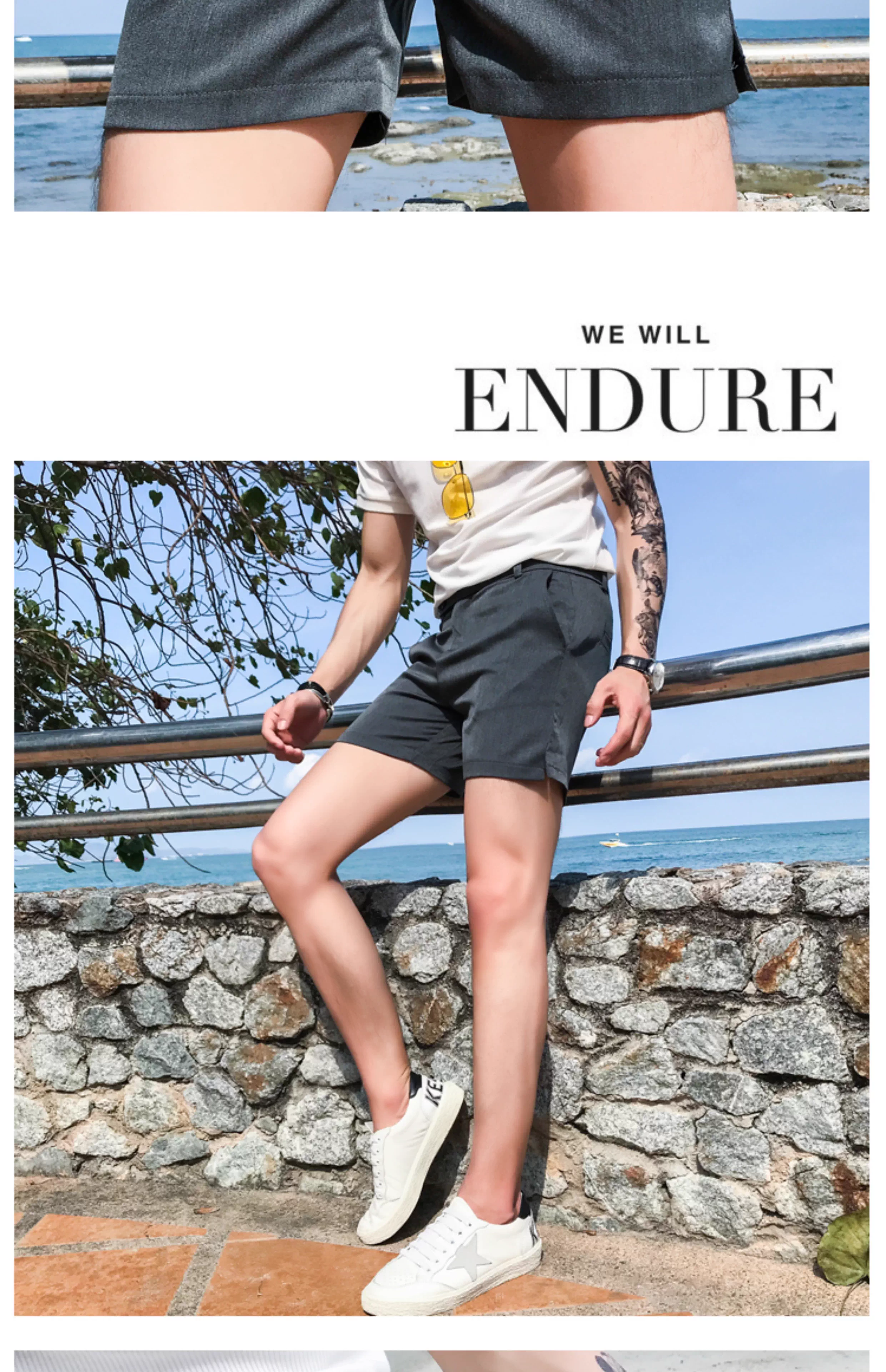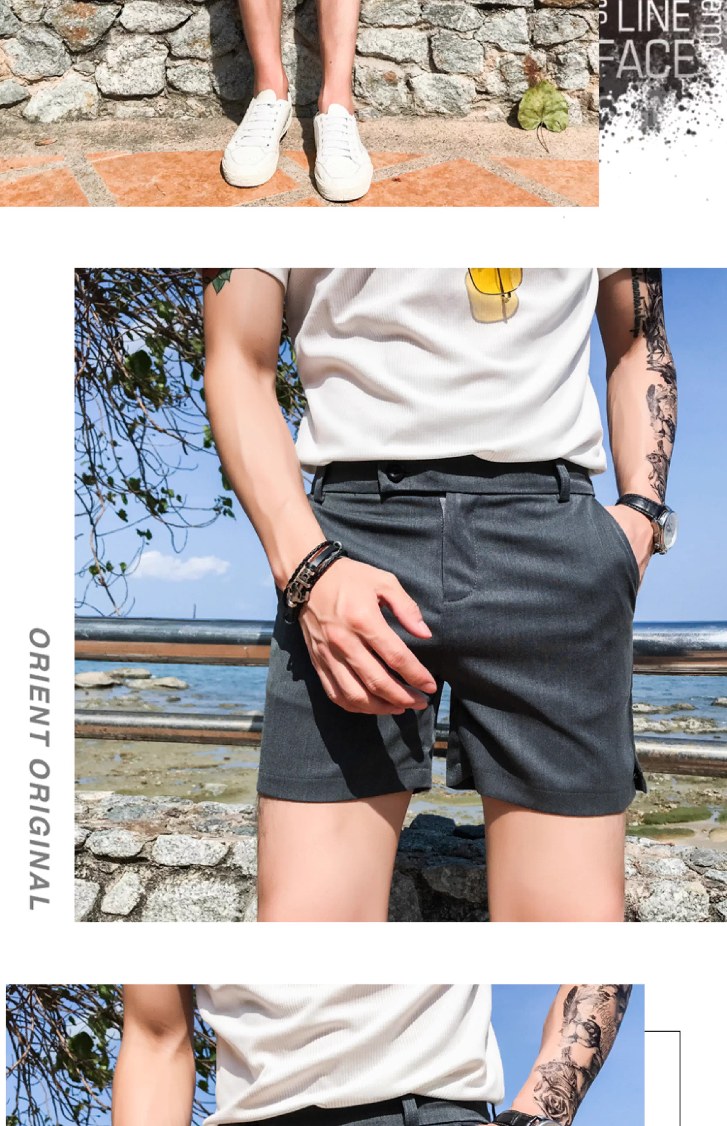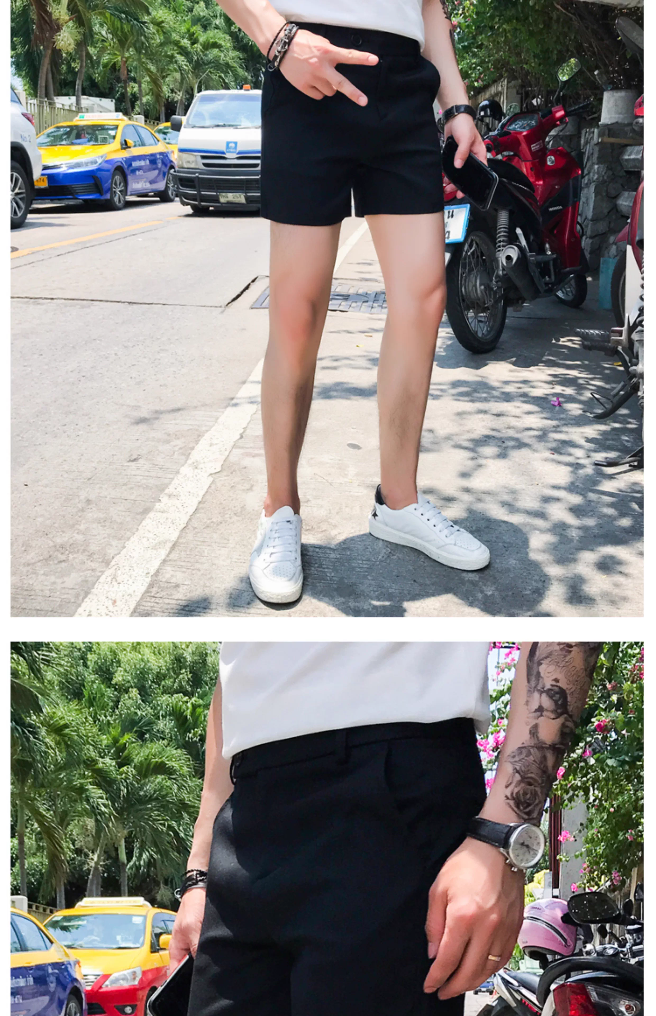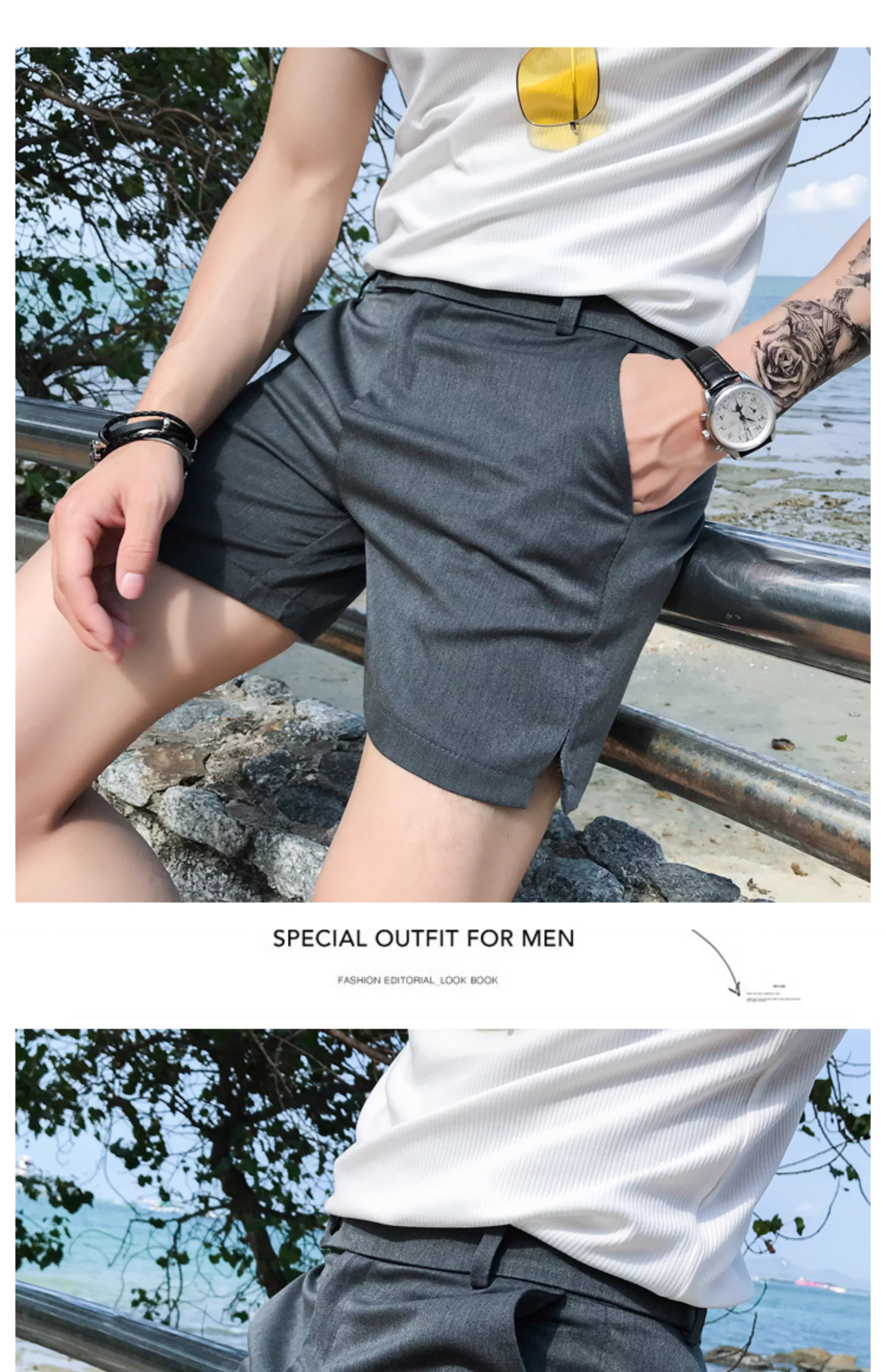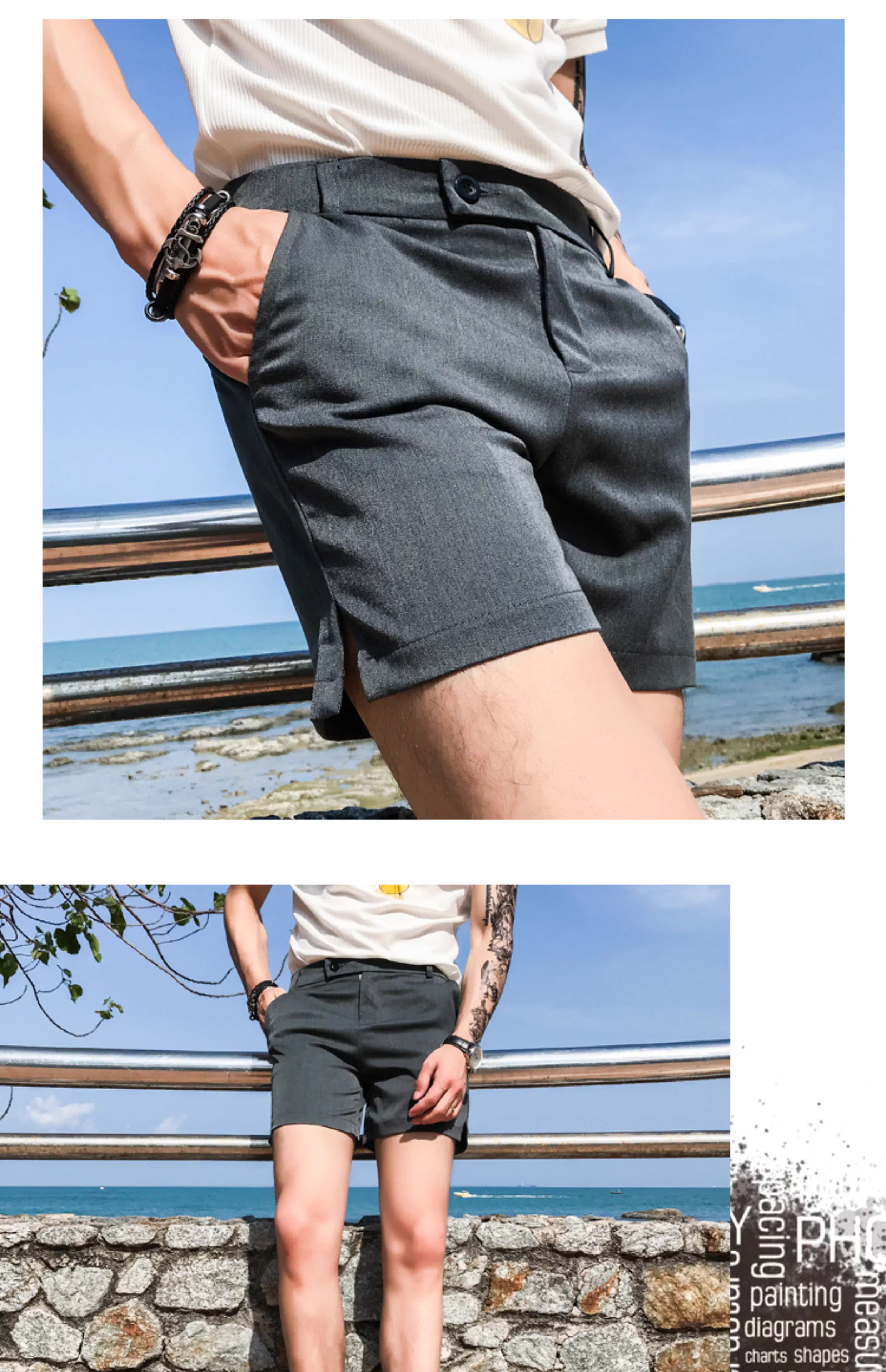 - Quần short nam thông thường, kiểu dáng mỏng mùa hè, thời trang Hàn Quốc, dáng ôm, quần ba phần đi biển, thương hiệu thời thượng, quần siêu ngắn cá tính và sành điệu.