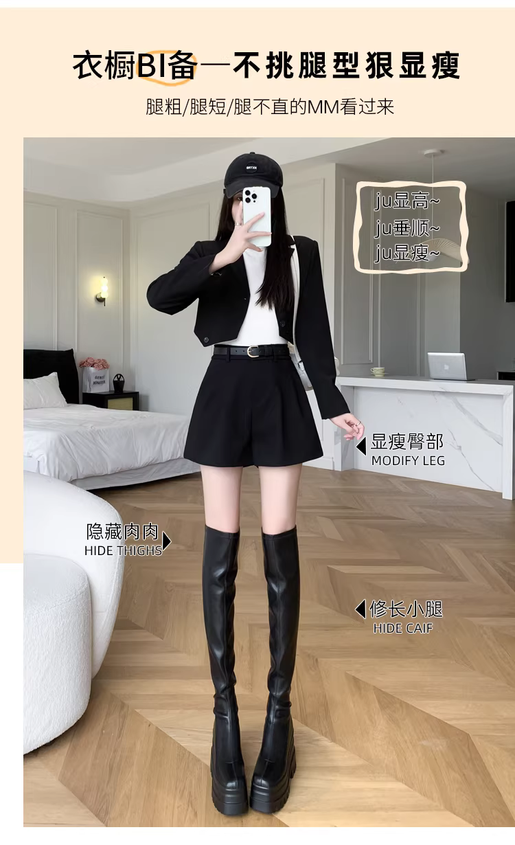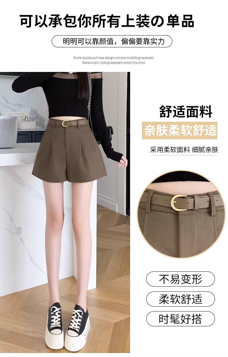 - Quần short nữ, quần mùa xuân, thu và hè, quần nữ dáng rộng lưng cao chữ A thời trang mới năm 2025, quần kiểu Martin.